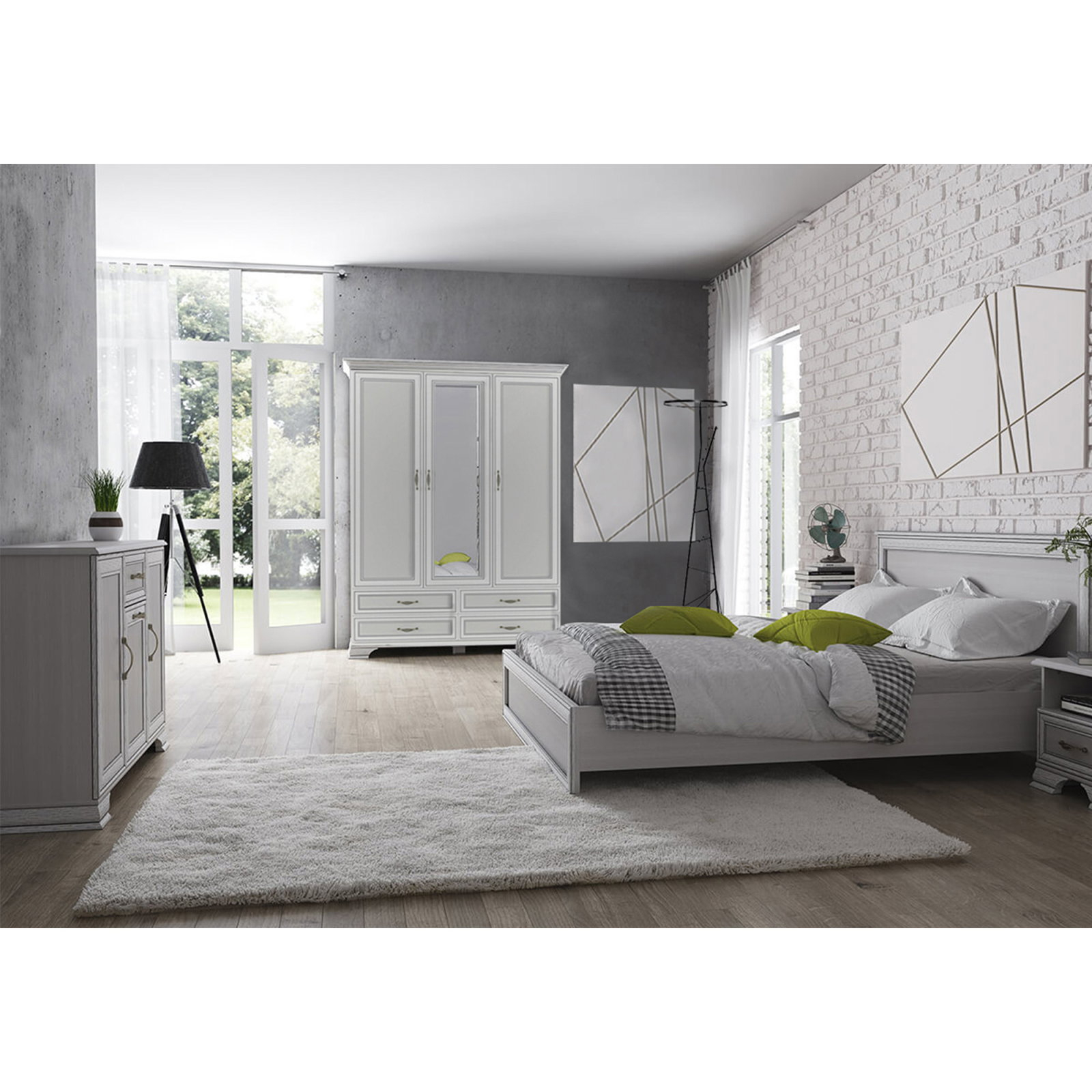 Set dormitor TIFFANY II, 5 piese, pat 160x200 cm, dulap 3 usi si 4 sertare, comoda, 2 noptiere, crem fineline