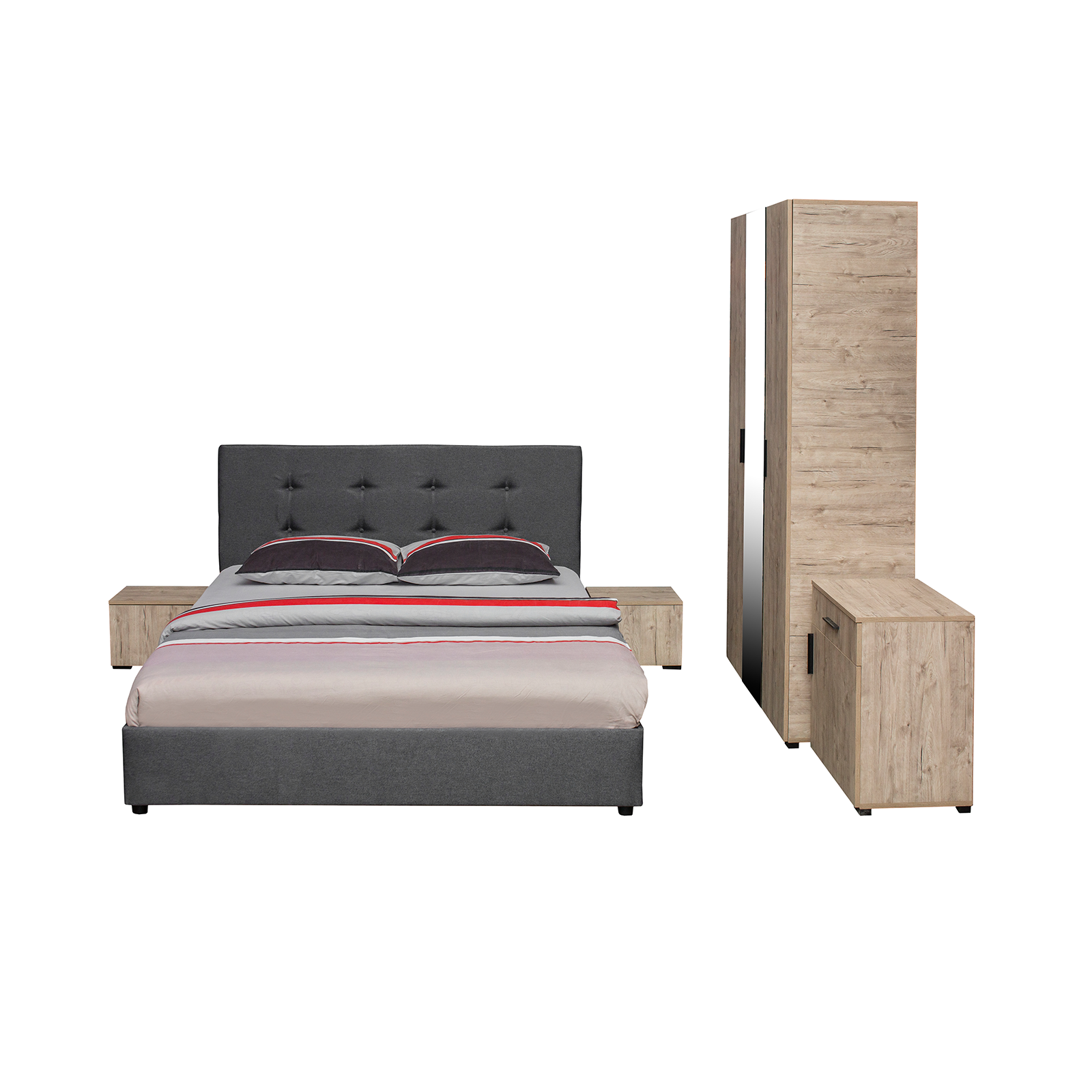 Set dormitor ECONO, 5 piese, pat 160x200 cm, dulap 3 usi, comoda, 2 noptiere, sherwood + gri