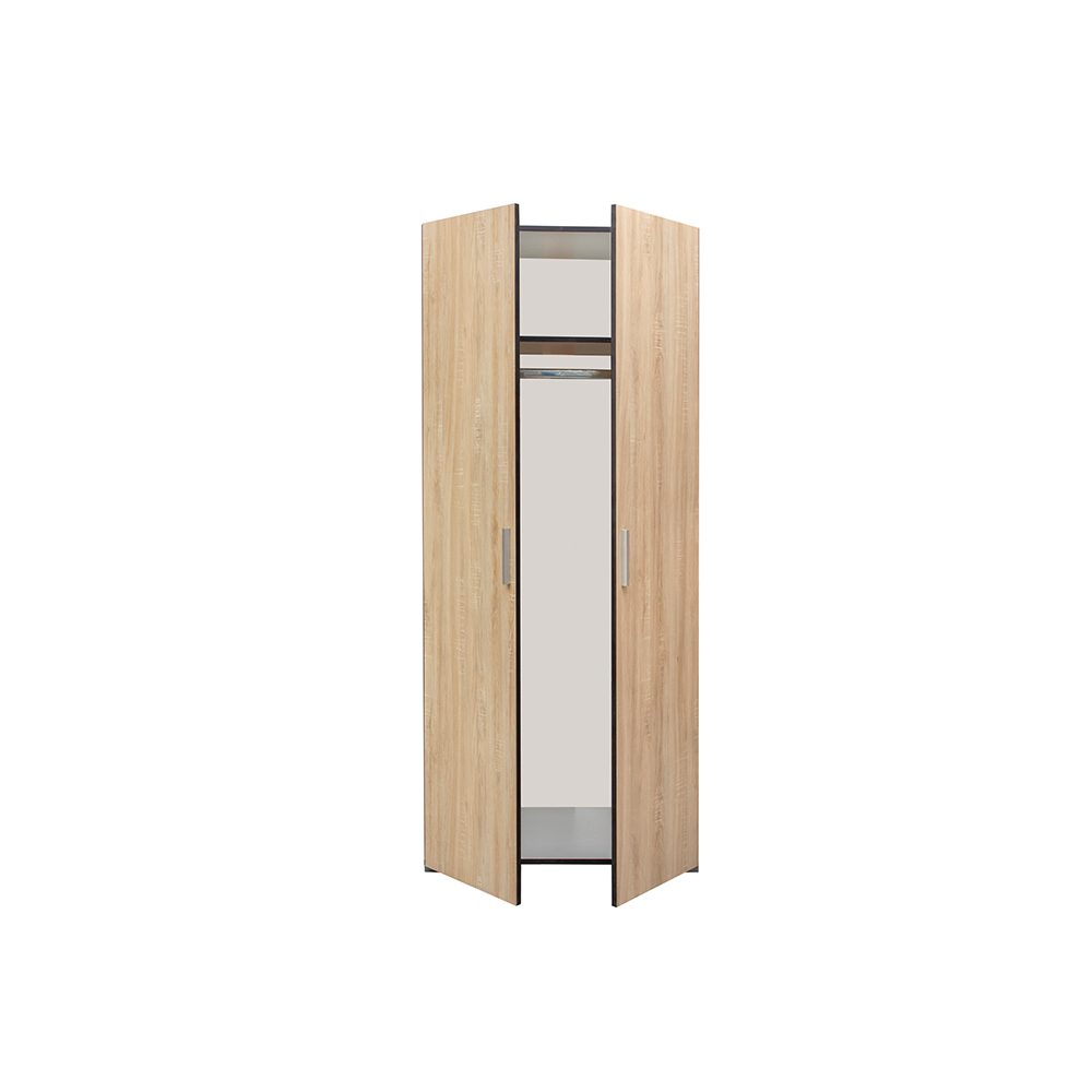 Dulap in 2 usi realizat din PAL melaminat ce contine o bara de haine. Inaltimea dulapului permite sa fie montat chiar si in camerele cu o inaltime de maxim 2m.