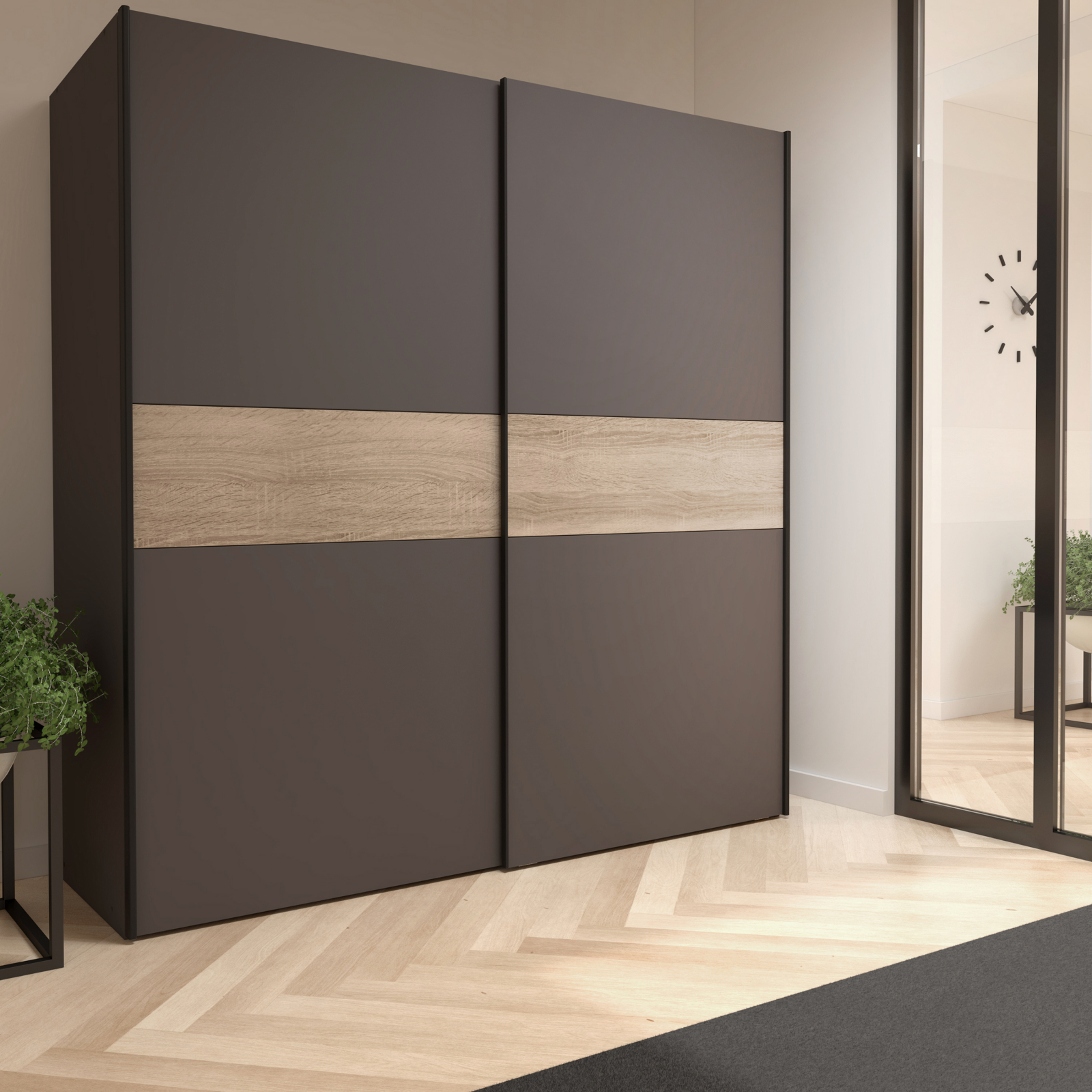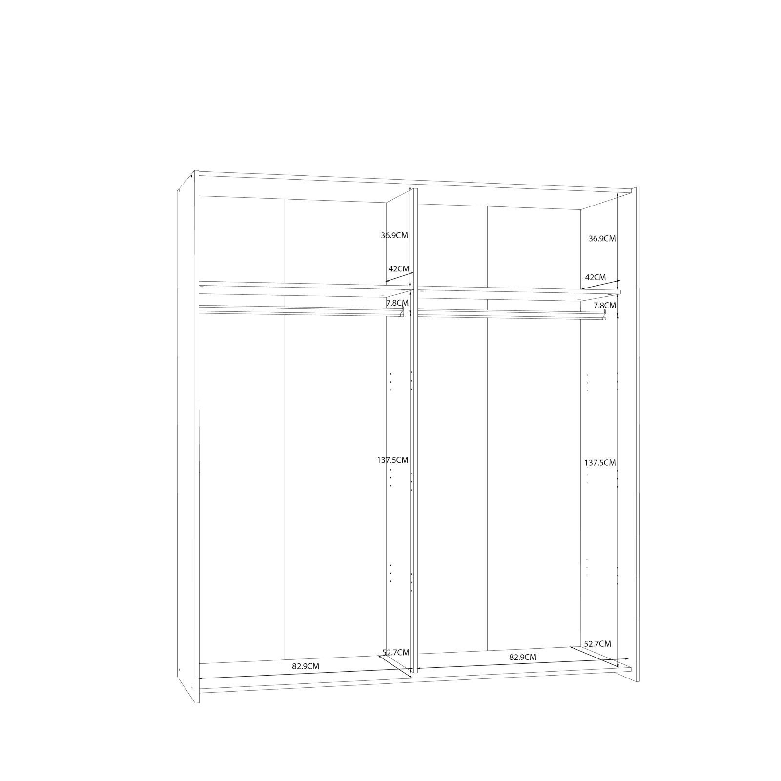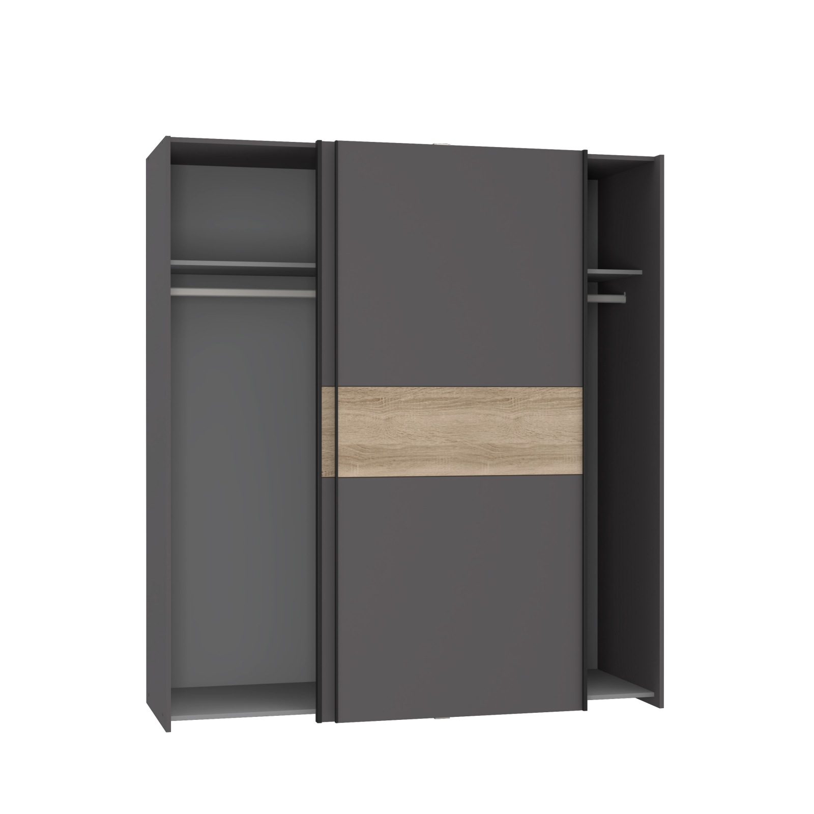 Dulapul BRTS822S-W14 este realizat intr-o armonie de elemente care adauga eleganta in orice camera de odihna. Datorita finisajului gri, lipsei manerelor pe usi, designului liniar si sistemului culisant pentru deschiderea usilor creeaza un ambient rafinat si modern.
