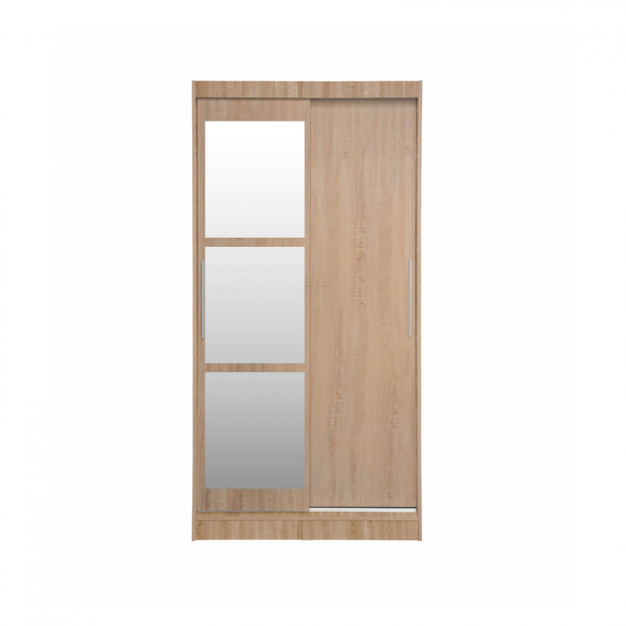 Dulap in 2 usi glisante realizat din PAL melaminat ce contine polite si suport pentru umerase. Inaltimea dulapului permite sa fie montat chiar si in camerele cu o inaltime de maxim 2M. Cu această piesa de mobilier versatila, vei avea posibilitatea sa iti organizezi garderoba intr-un mod eficient, sa economisesti spatiu si sa adaugi un element de design rafinat in casa ta.