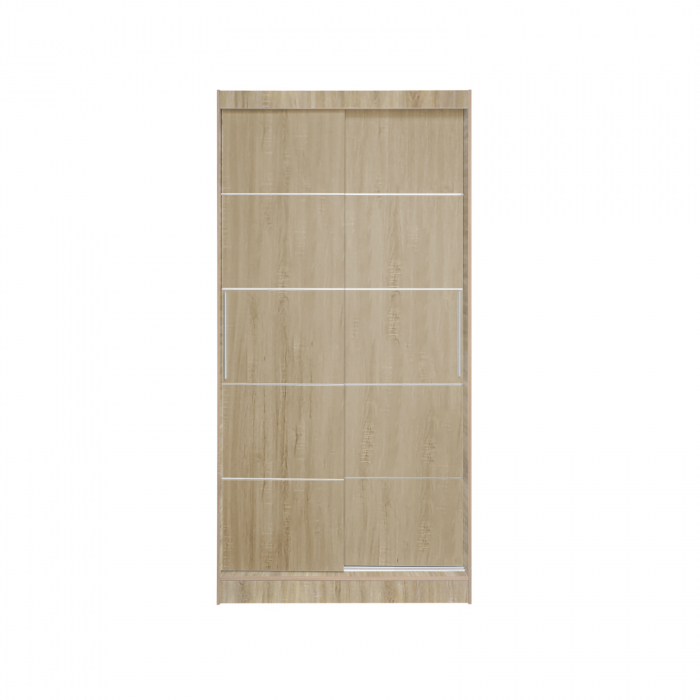 Dulap in 2 usi glisante realizat din PAL melaminat ce contine polite si suport pentru umerase. Inaltimea dulapului permite sa fie montat chiar si in camerele cu o inaltime de maxim 2M.