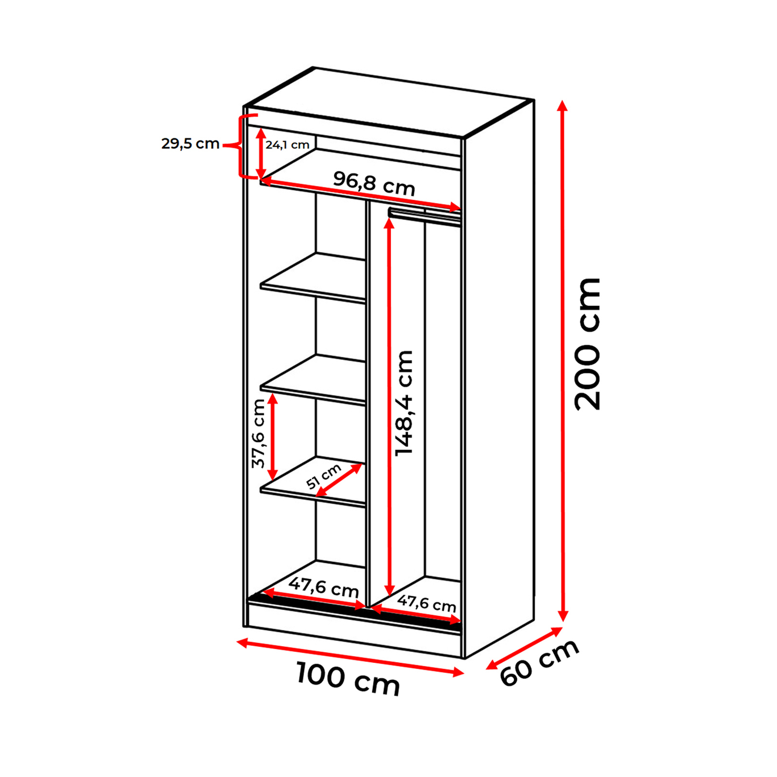 • Accesorii incluse: polite, bara haine, feronerie