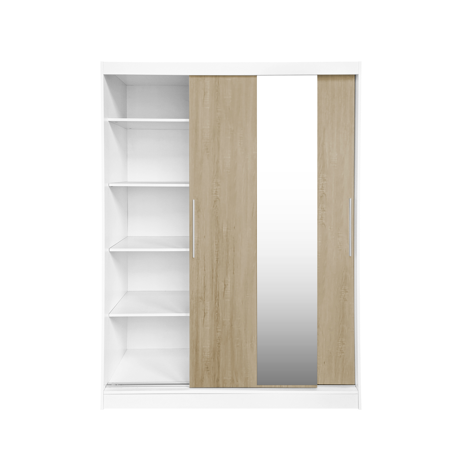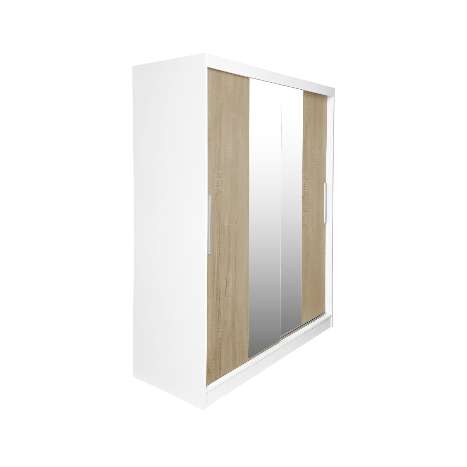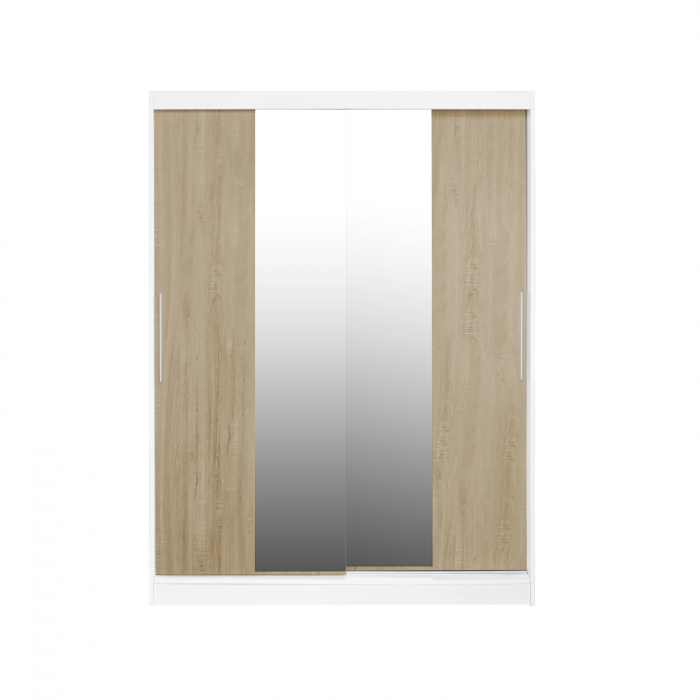 Dulap RODOS 04, usi glisante si oglinda, corp alb + usi sonoma, 150x60x200 cm