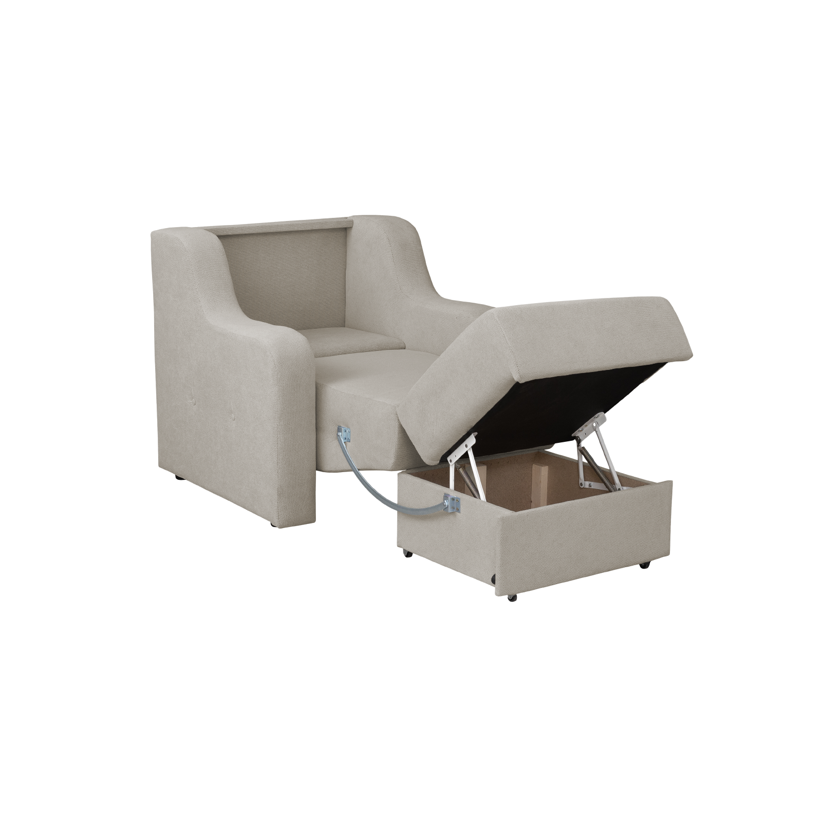 Fotoliu GINA II extensibil, cu arcuri si lada depozitare, crem, 95x100x95 cm