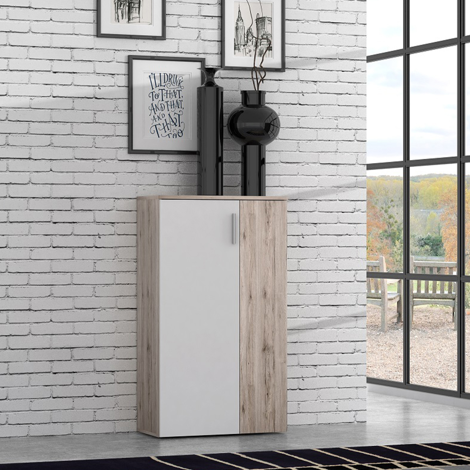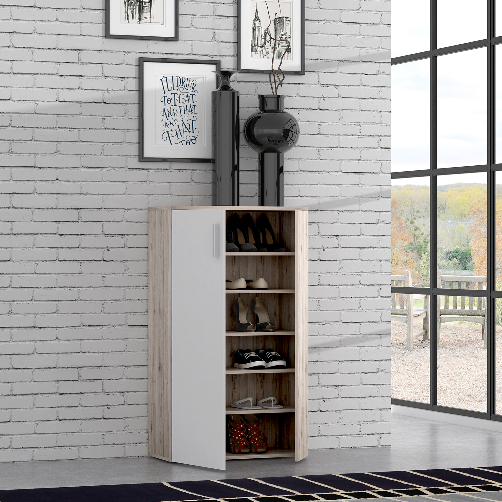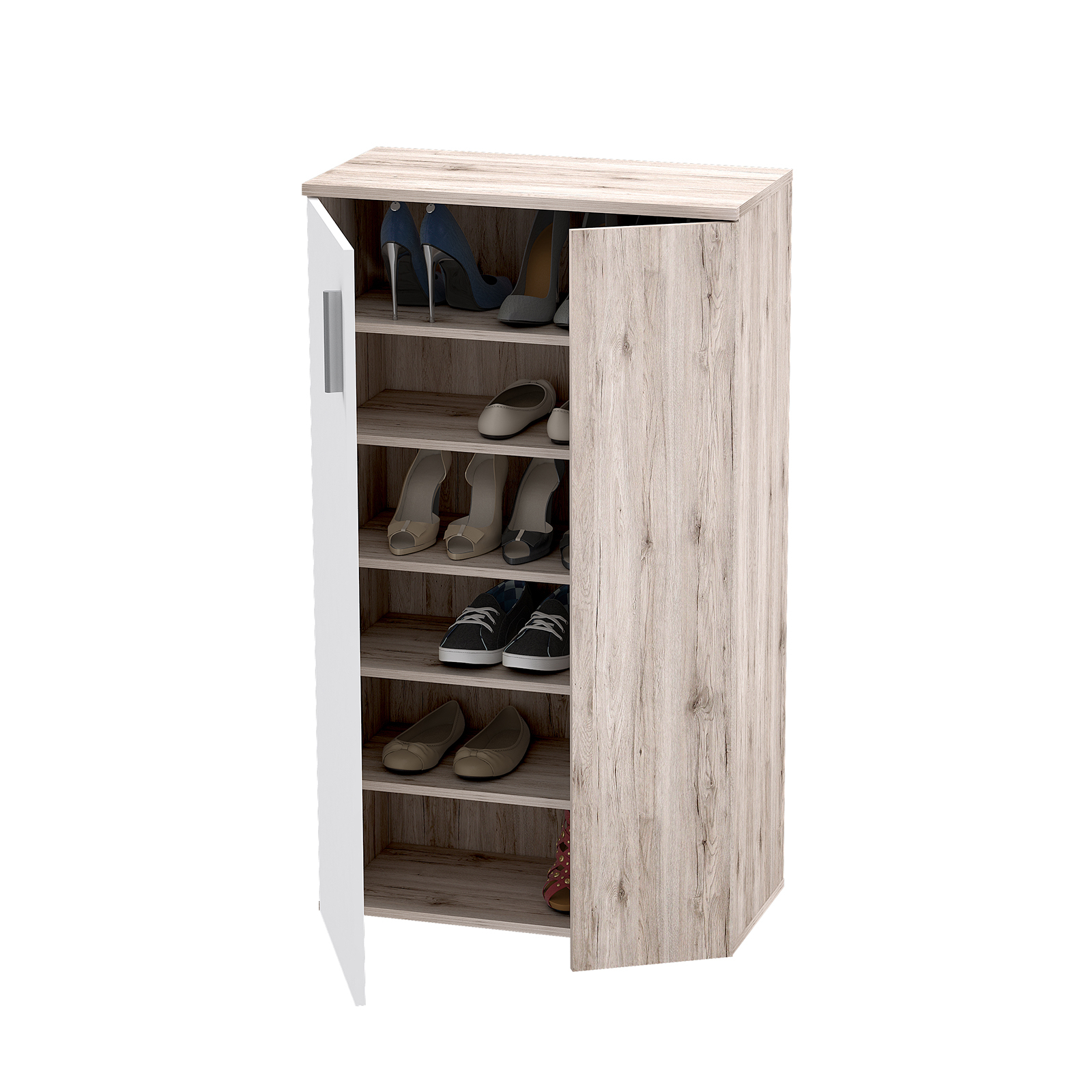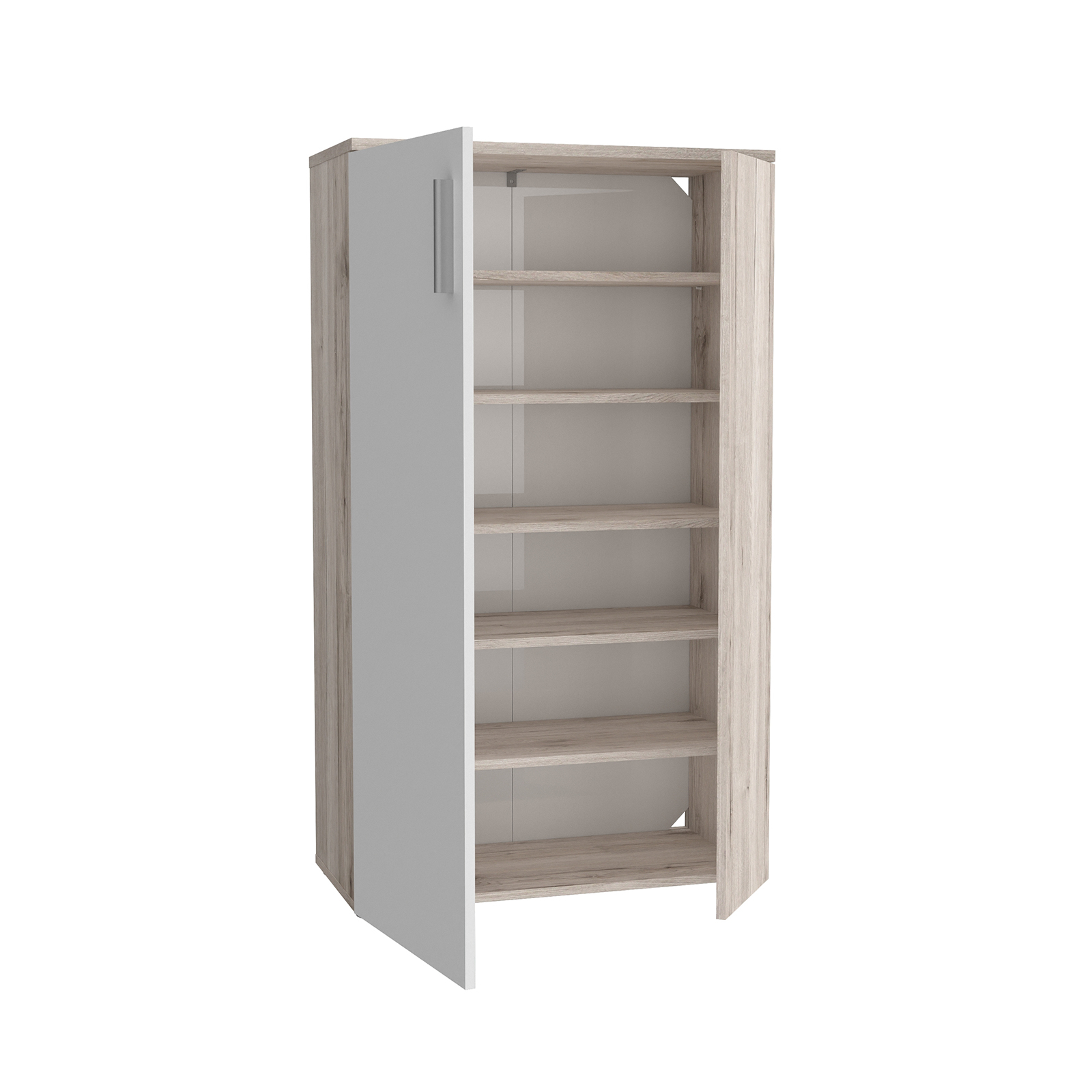 Pantofar BOOTS, cu 2 usi, 6 rafturi, stejar sherwood + alb, 68,9x34,1x120,4 cm