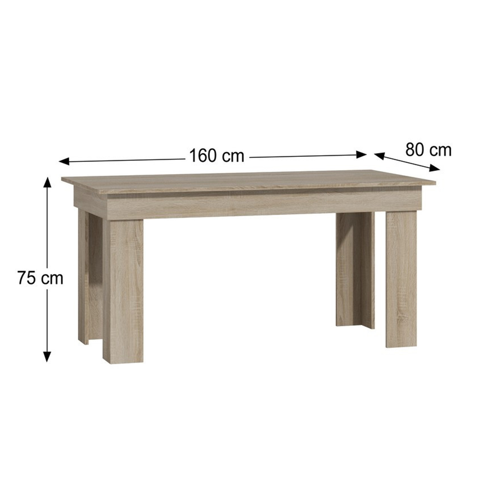 Masa MONTILLA, 8 persoane, sonoma deschis, 160x80x75 cm