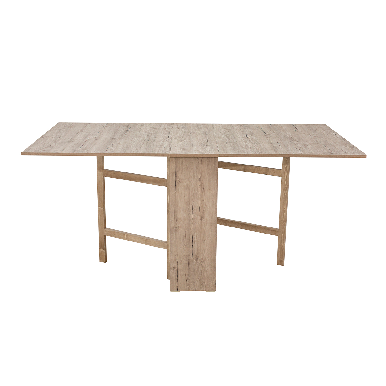 Blatul din PAL melaminat cu cant ABS si scheletul din lemn masiv creeaza o piesa de mobilier usor de intretinut si rezistenta in timp. Acesta are forma dreptunghiulara atat in varianta plianta, cat si in varianta extinsa.