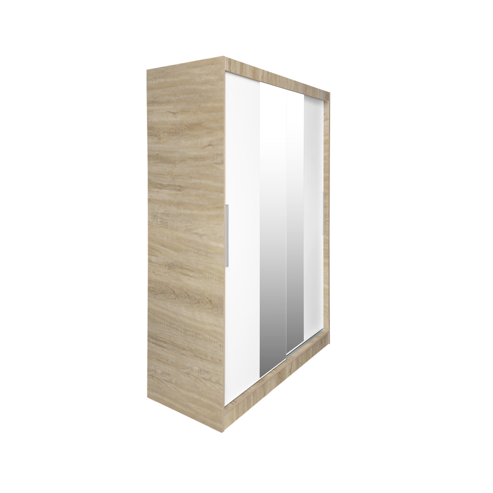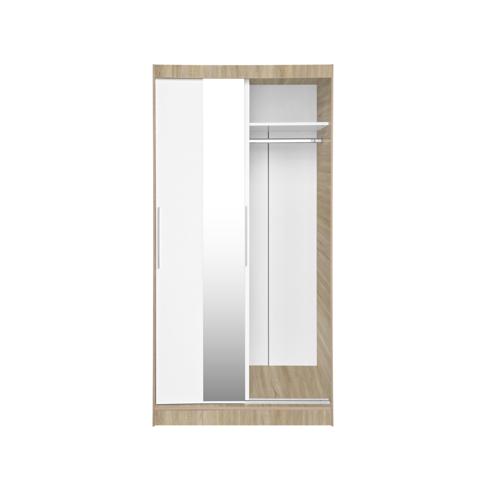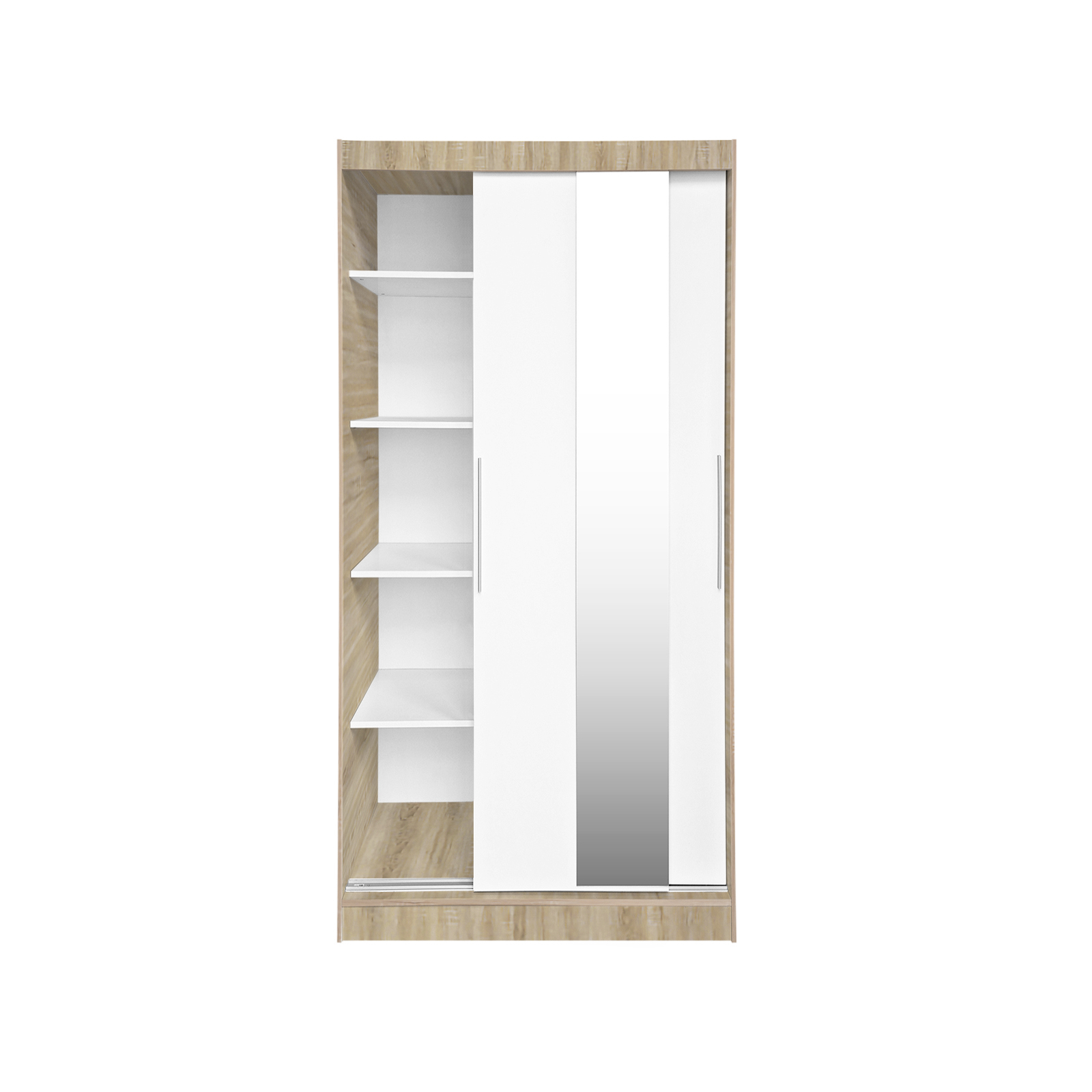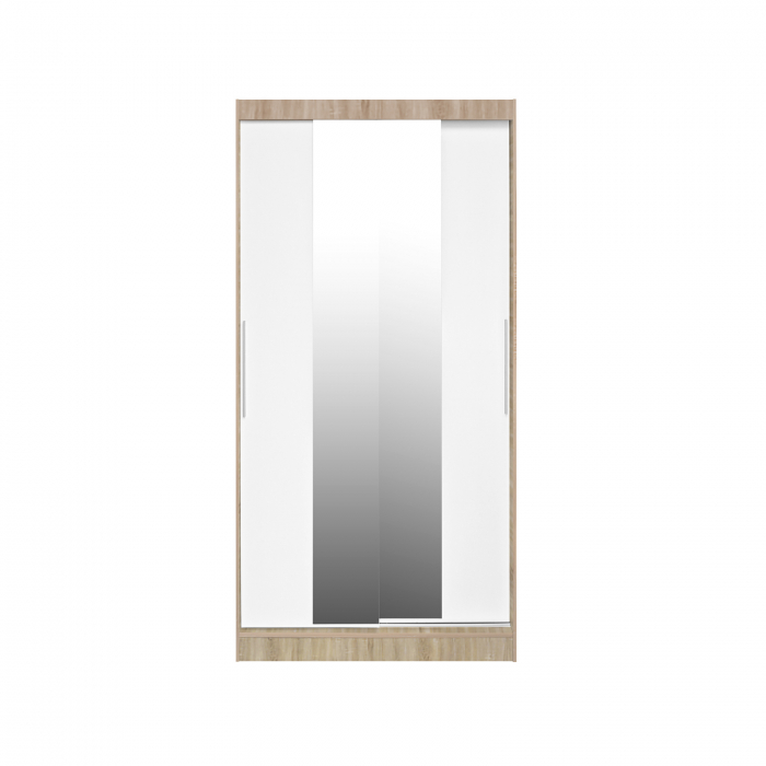 Dulap KOSS 04, cu usi glisante si oglinda, corp sonoma + usi alb, 100x60x200 cm