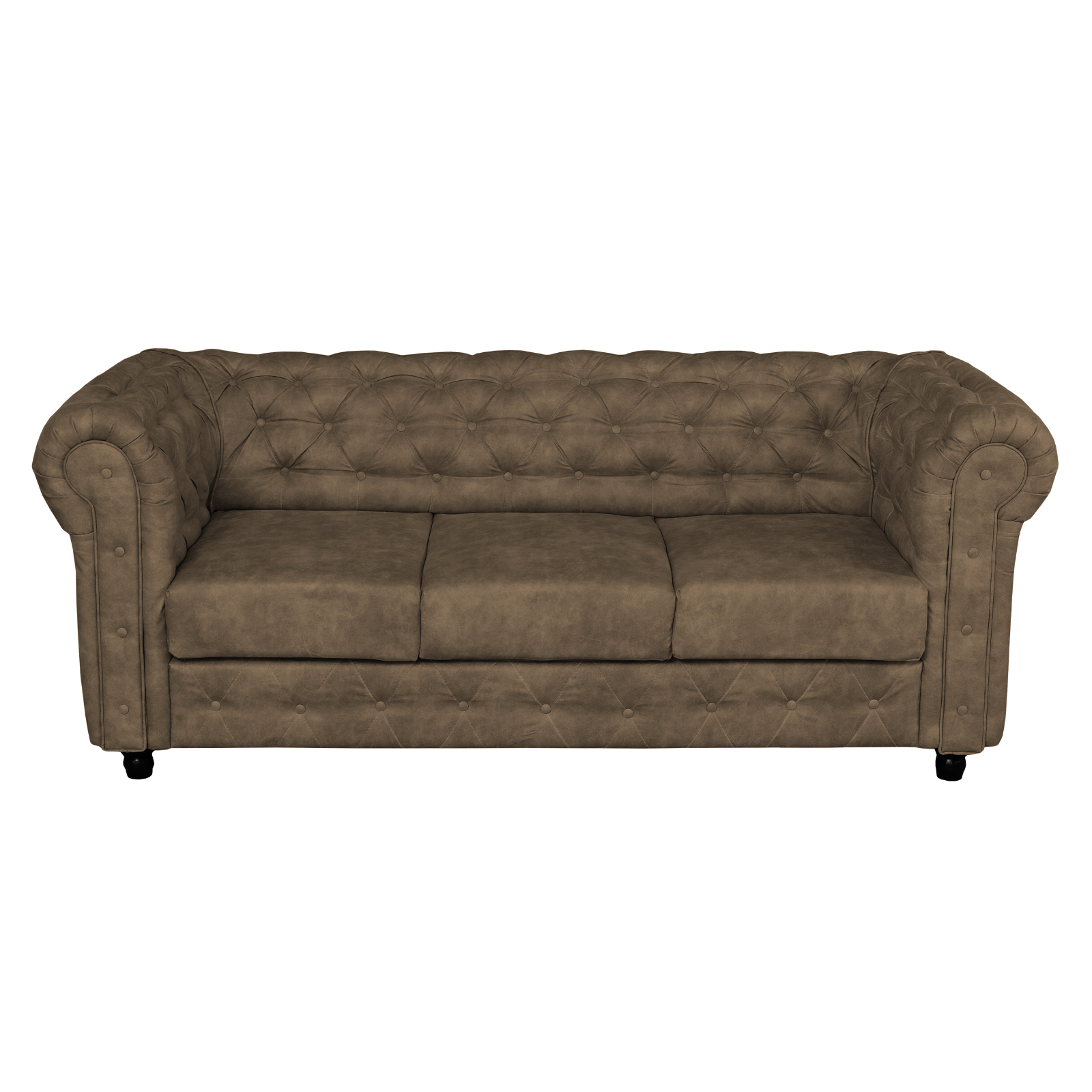 Canapea CHESTERFIELD fixa, 3 locuri, cu arcuri, maro deschis, 205x90x80 cm