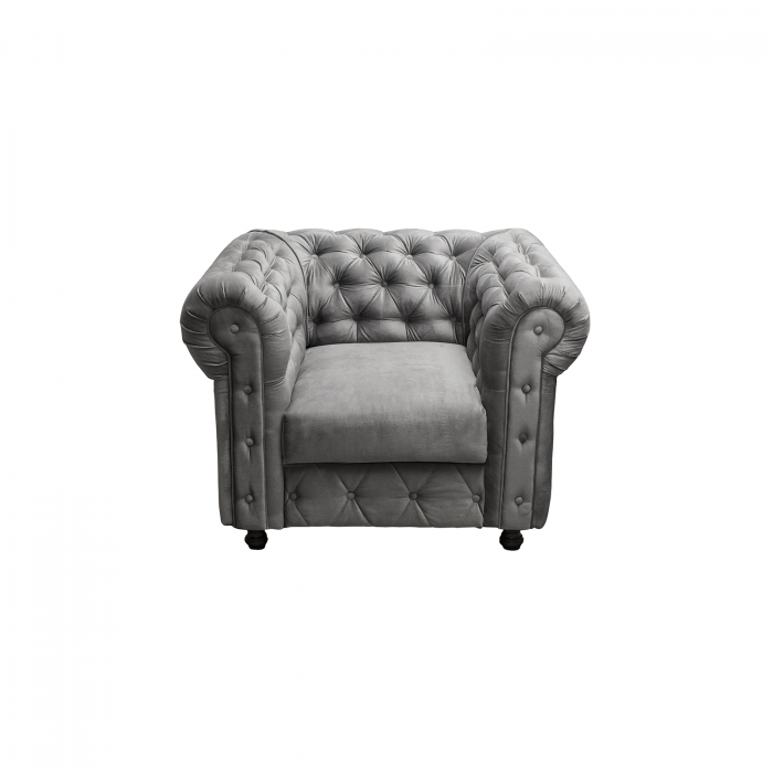 Fotoliu CHESTERFIELD cu arcuri, gri, 105x90x80 cm
