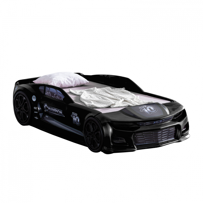 Pat pentru copii masina MINI CHAMPION, negru, 70x140 cm