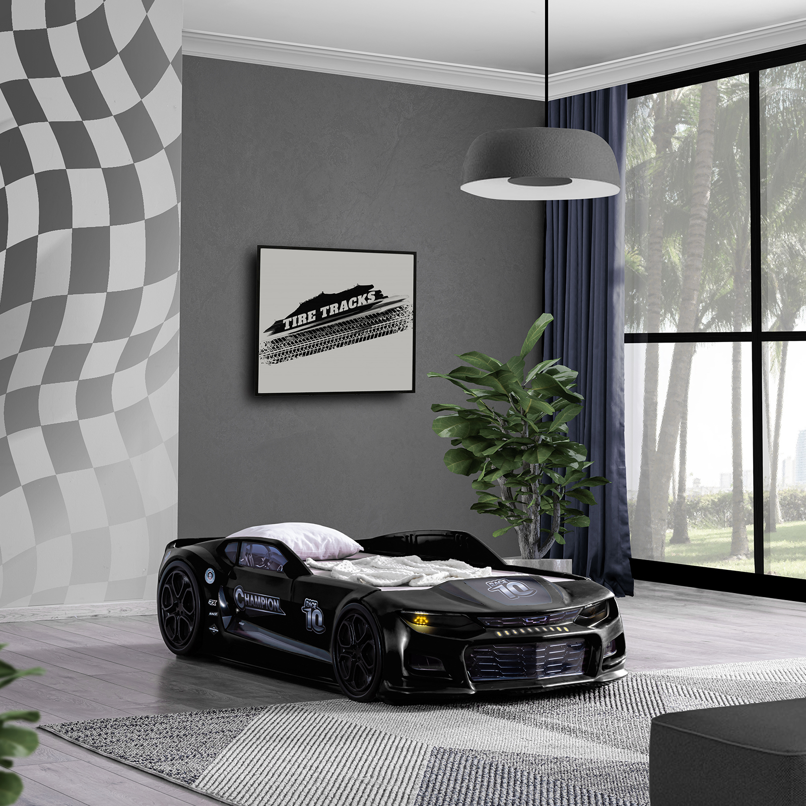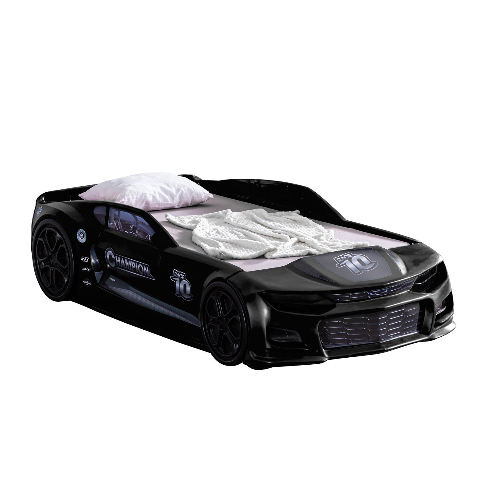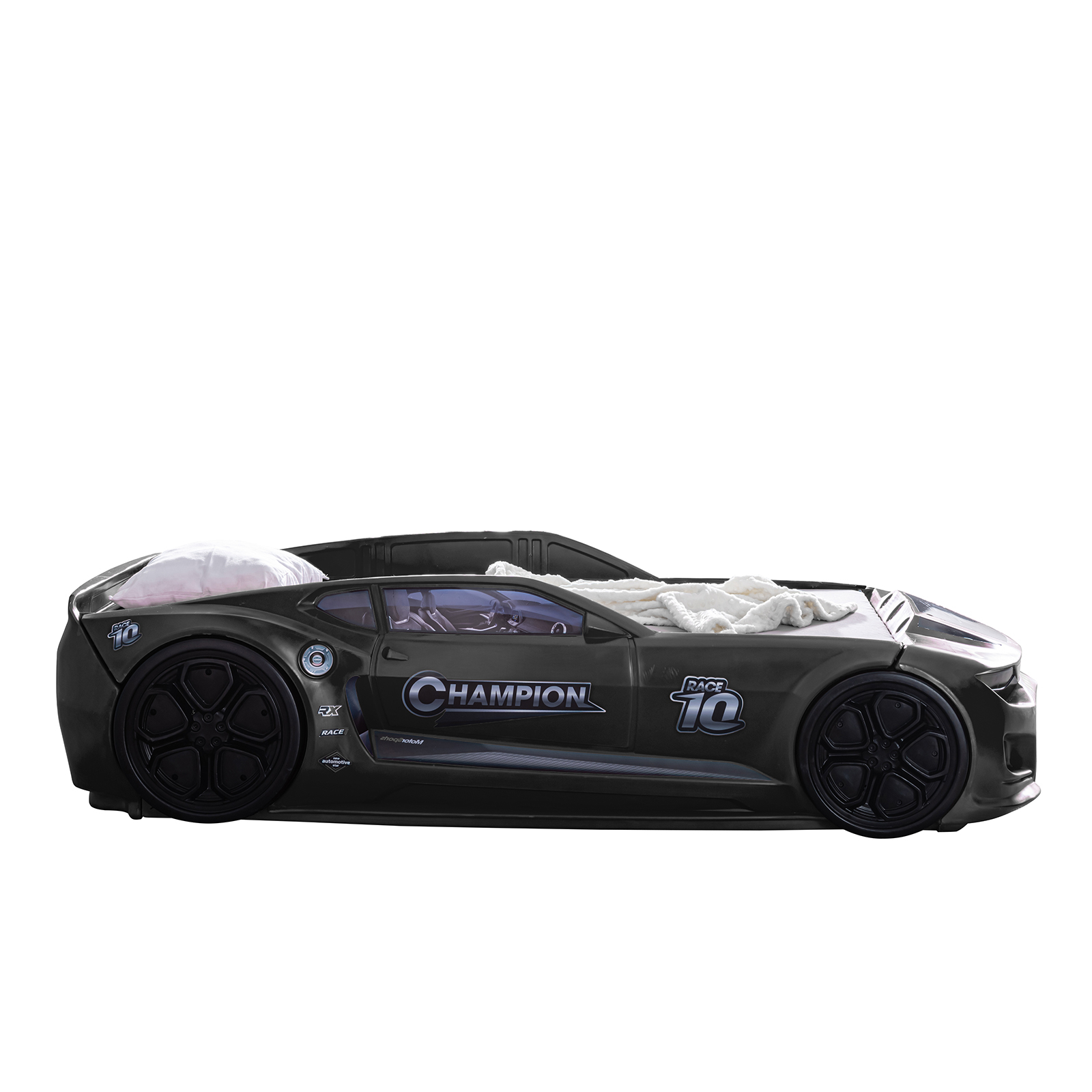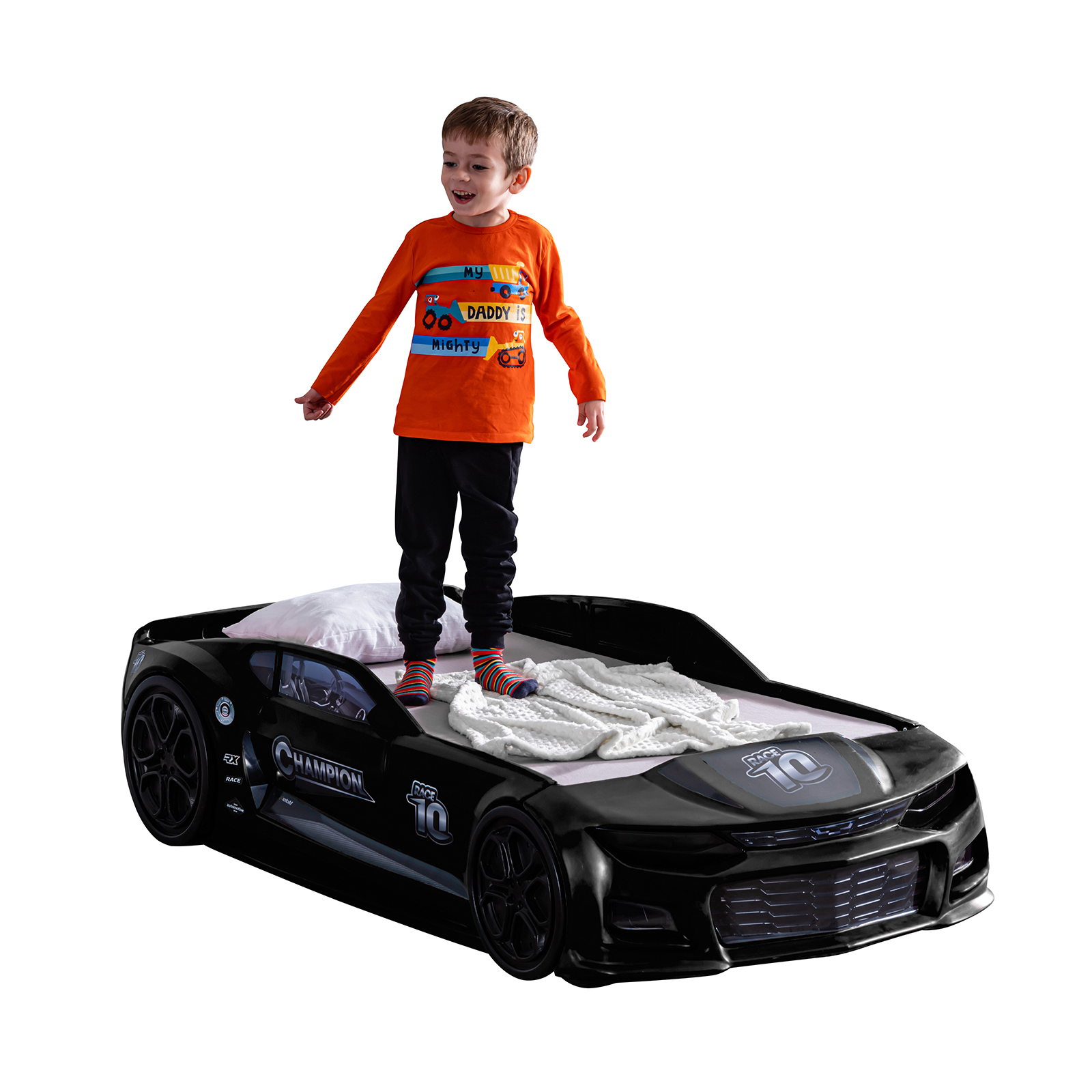 Selectarea patului ideal pentru camera copilului tau este o provocare importanta. Acesta trebuie sa ofere nu doar confortul necesar, ci si un design modern si creativ. Patul MINI CHAMPION schimba aspectul camerei copilului datorita formei si imprimeului inedit. Farurile cu lumini LED, grilele de aer, rotile si materialele de inalta calitate folosite, transforma spatiul de dormit in locul preferat al micului tau pilot. Fiind rezistent in timp, acest pat va oferi numeroase momente placute intregii familii. Patul MINI CHAMPION ofera copilului tau un somn linistit si odihnitor, siguranta, incredere si un spatiu generos pentru joaca. Este o alegere care imbina utilul cu placutul si aduce un plus de bucurie in camera copilului tau.