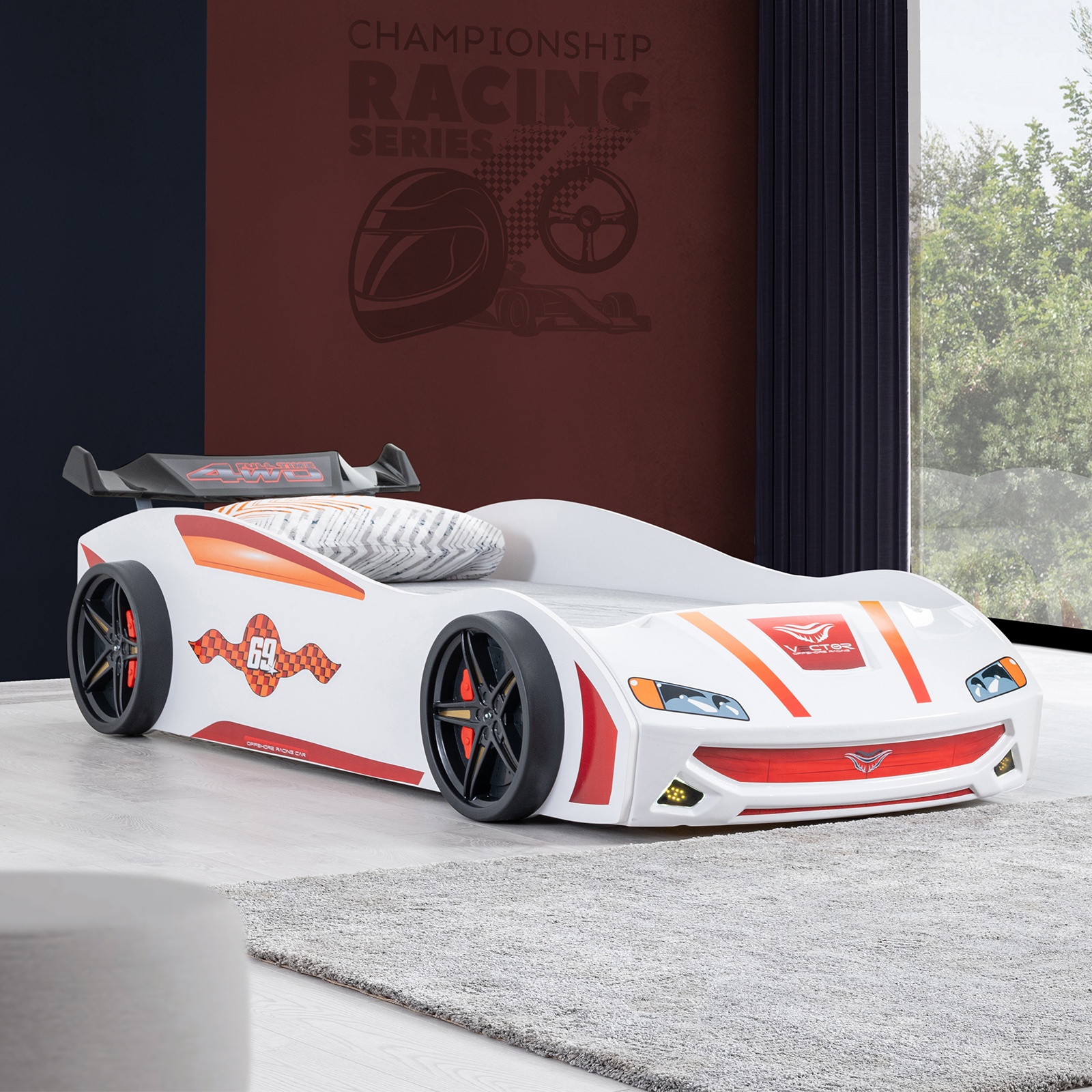 Alegerea patului ideal pentru camera copilului nu este deloc usoara. Trebuie sa ofere confortul necesar si sa aiba un design modern si creativ. Patul ECO VECTOR, in forma unei masini de curse, va deveni punctul central al dormitorului micutului tau pilot. Acesta faciliteaza o tranzitie lina de la patul destinat bebelusilor la un pat mai mare sau de la camera parintilor la propria lor camera. Grilele de aer si materialele de inalta calitate folosite, transforma spatiul de dormit in locul preferat al copilului tau. Increderea, siguranta, confortul, inspiratia, creativitatea - toate sunt surse de distractie maxima si de momente de neuitat. Patul ECO VECTOR este atat pentru micutul tau, cat si pentru tine. Acesta ofera o experienta memorabila si plina de bucurie in timpul somnului si al jocului.