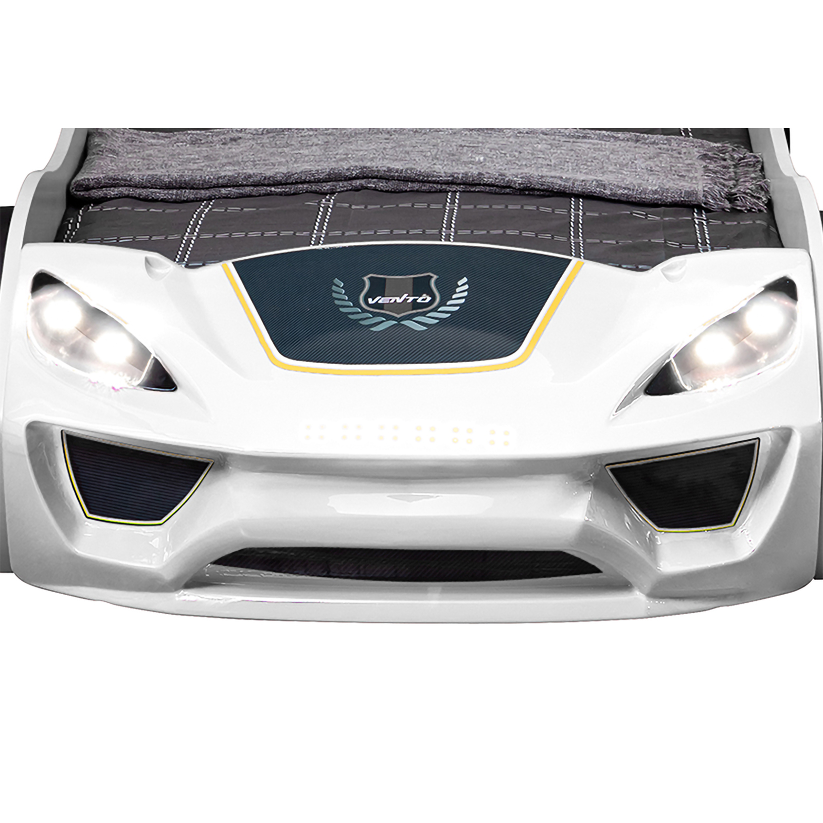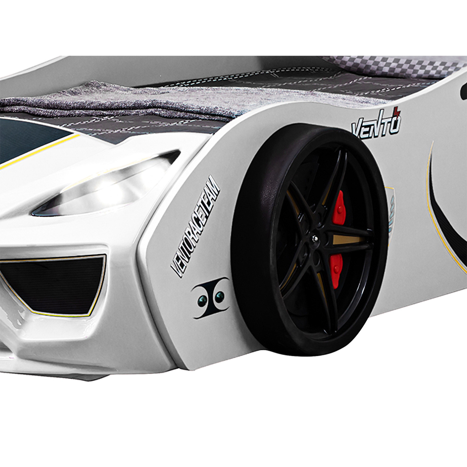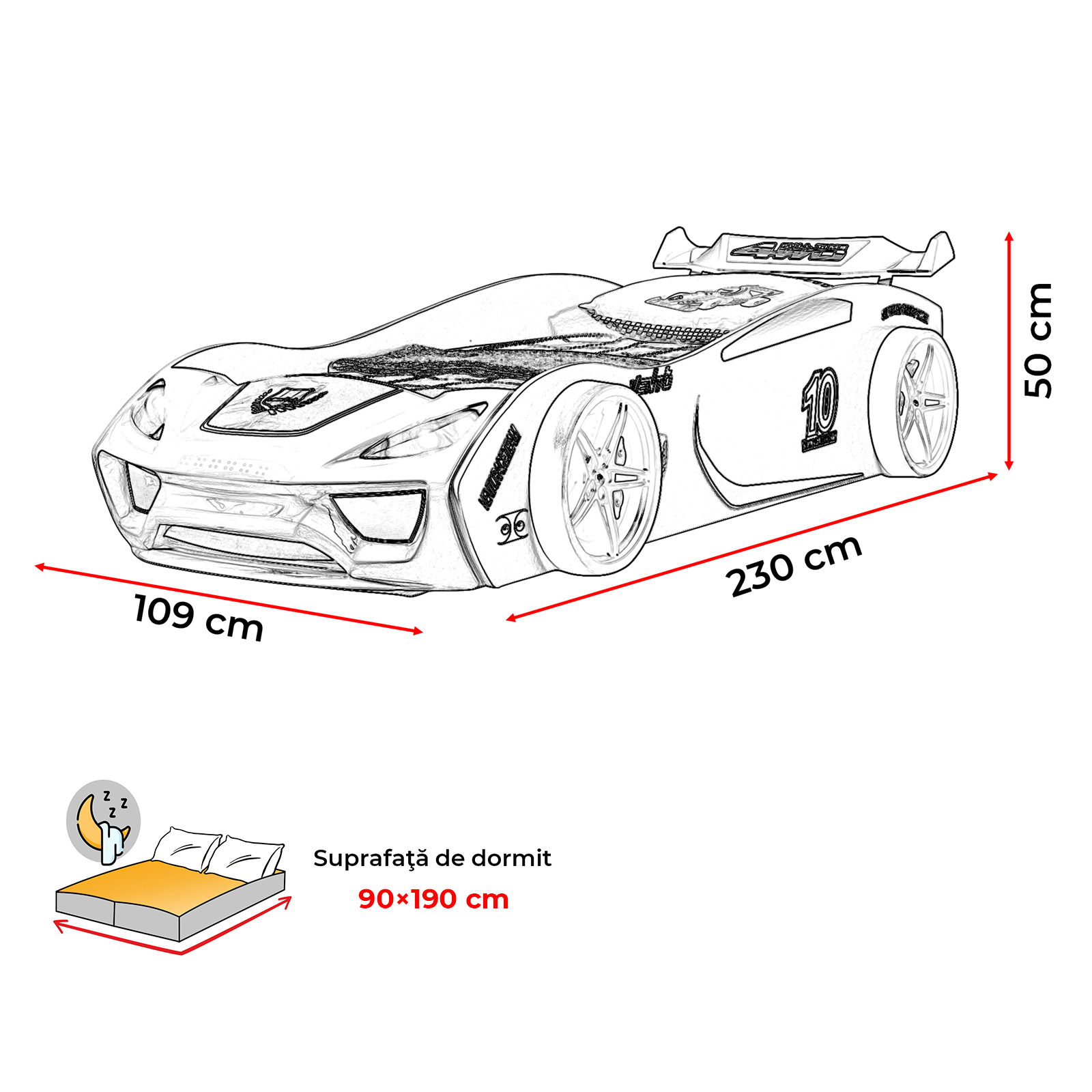 Patul perfect pentru camera copilului este mai mult decat un simplu pat - este o poarta catre aventura si imaginatia copilariei. Trebuie sa ofere confortul necesar, sa aiba un design contemporan si creativ si sa faciliteze somnul copilului. Patul ECO VENTO ajuta micutii sa se acomodeze mai usor de la patul pentru bebelusi la unul mai mare sau de la camera parintilor la propria lor camera. Realizat in forma unei masini de curse, acest pat este o alegere de incredere. Design-ul sau special aduce un plus de stil in camera copiilor. Durabil si compact, va atrage atentia in dormitorul micutului tau pilot. Echipat cu functii speciale si detalii realiste, patul ECO VENTO va fi locul preferat al micutului tau pentru odihna si joaca.