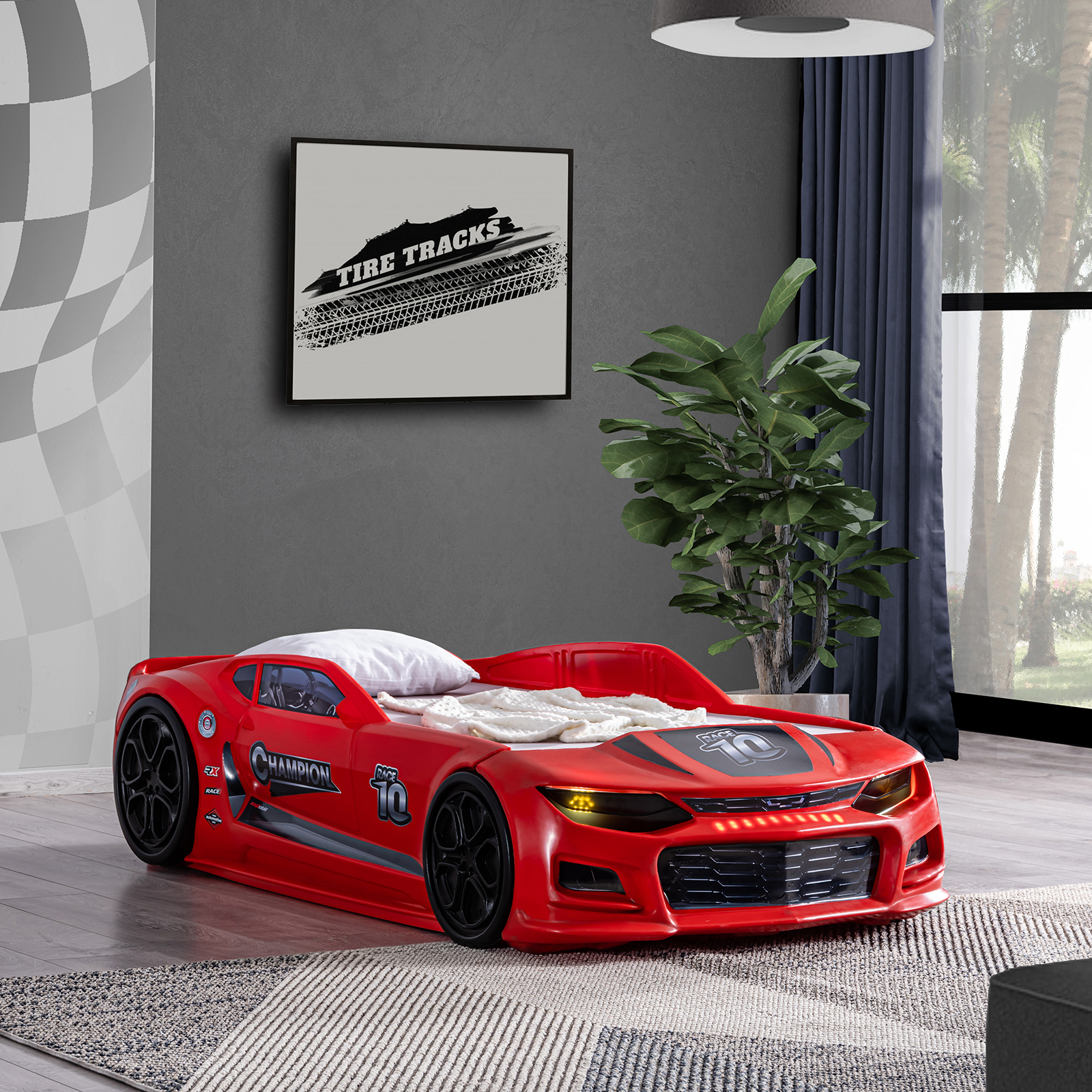 Selectarea patului ideal pentru camera copilului tau este o provocare importanta. Acesta trebuie sa ofere nu doar confortul necesar, ci si un design modern si creativ. Patul MINI CHAMPION schimba aspectul camerei copilului datorita formei si imprimeului inedit. Farurile cu lumini LED, grilele de aer, rotile si materialele de inalta calitate folosite, transforma spatiul de dormit in locul preferat al micului tau pilot. Fiind rezistent in timp, acest pat va oferi numeroase momente placute intregii familii. Patul MINI CHAMPION ofera copilului tau un somn linistit si odihnitor, siguranta, incredere si un spatiu generos pentru joaca. Este o alegere care imbina utilul cu placutul si aduce un plus de bucurie in camera copilului tau.