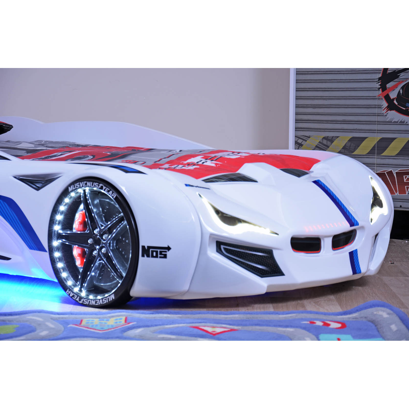 Pentru a avea un somn odihnitor si o trezire plina de energie, patul este foarte important. Realizat din materiale de inalta calitate, rezistent si compact, patul in forma de masina MVN1, poate fi o alegere inspirata. Acesta poate transforma intregul aspect al camerei copiilor, surprinde micutii si poate da startul distractiei. Farurile cu lumini LED, grilele de aer, usile, rotile, sunetul, telecomanda si materialele folosite transforma spatiul de dormit in locul preferat al copilului tau. Patul MVN1 este conceput pentru a-i oferi copilului tau siguranta si incredere. Acesta ii pune la dispozitie un spatiu generos pentru joaca si confortul necesar pentru un somn linistit, ceea ce il face o investitie in bunastarea si fericirea micutului tau.