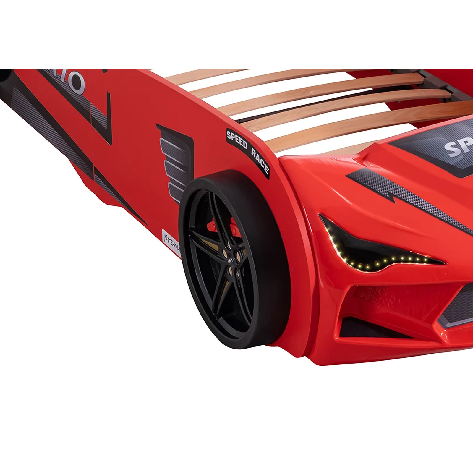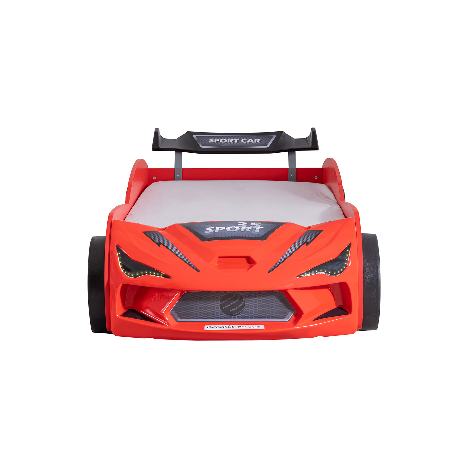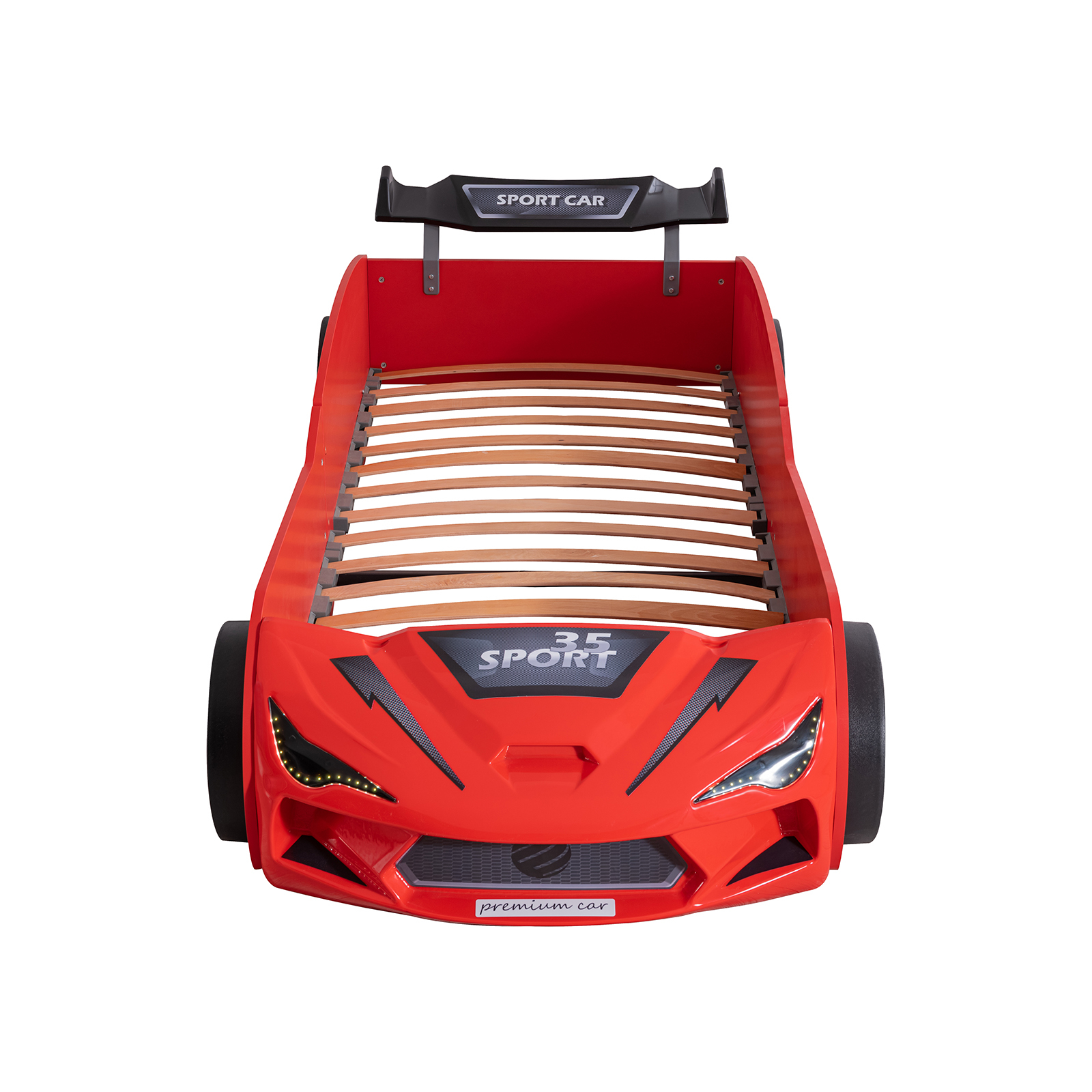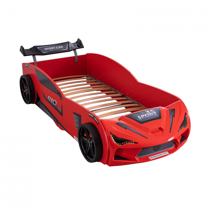 Pat pentru copii masina MVN2 ECO, cu faruri, rosu, 90x200 cm