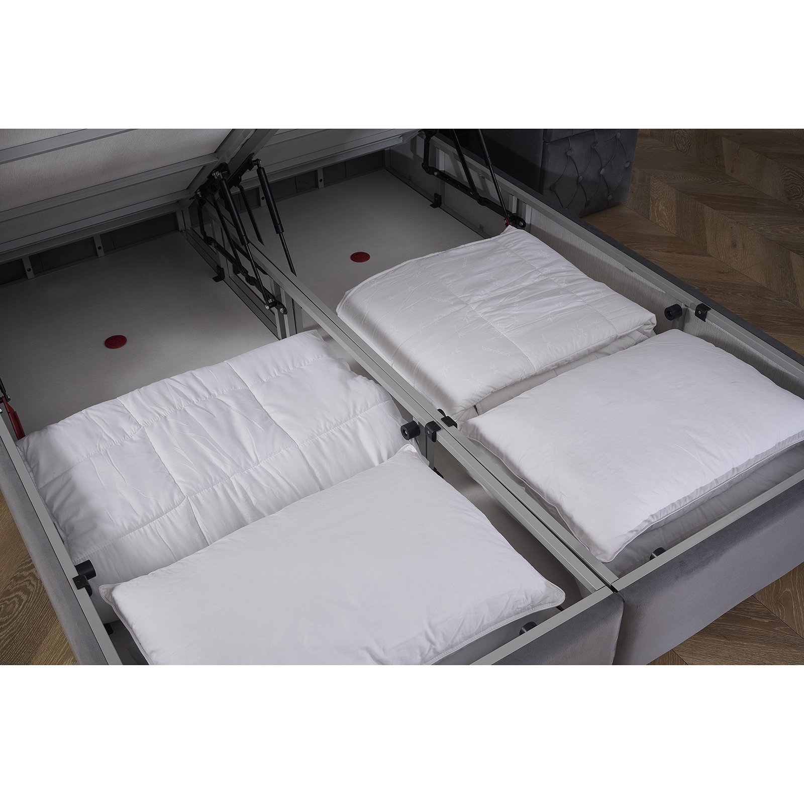 • Spatiul generos pentru depozitare permite accesul pentru curatare si igienizare fara a demonta patul.