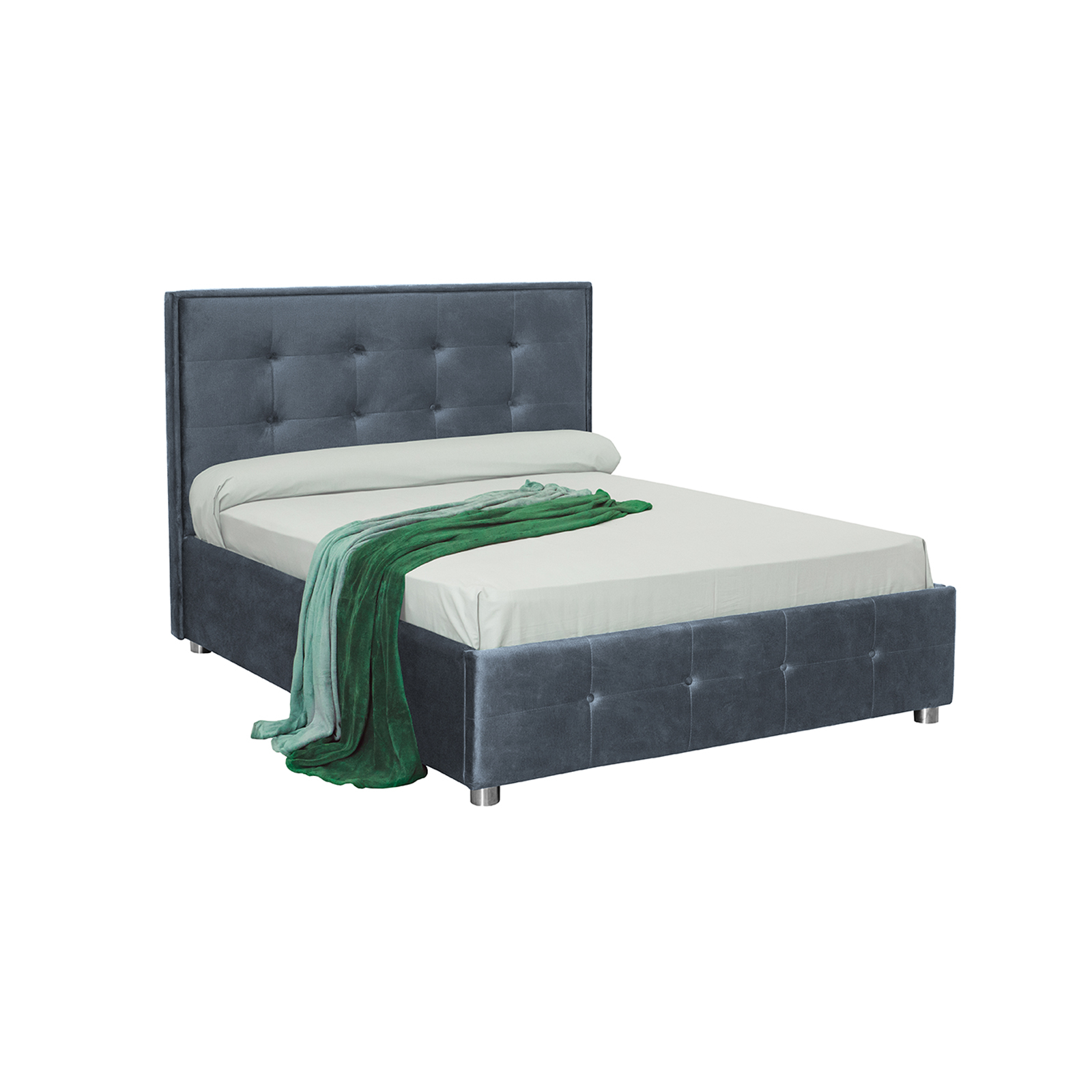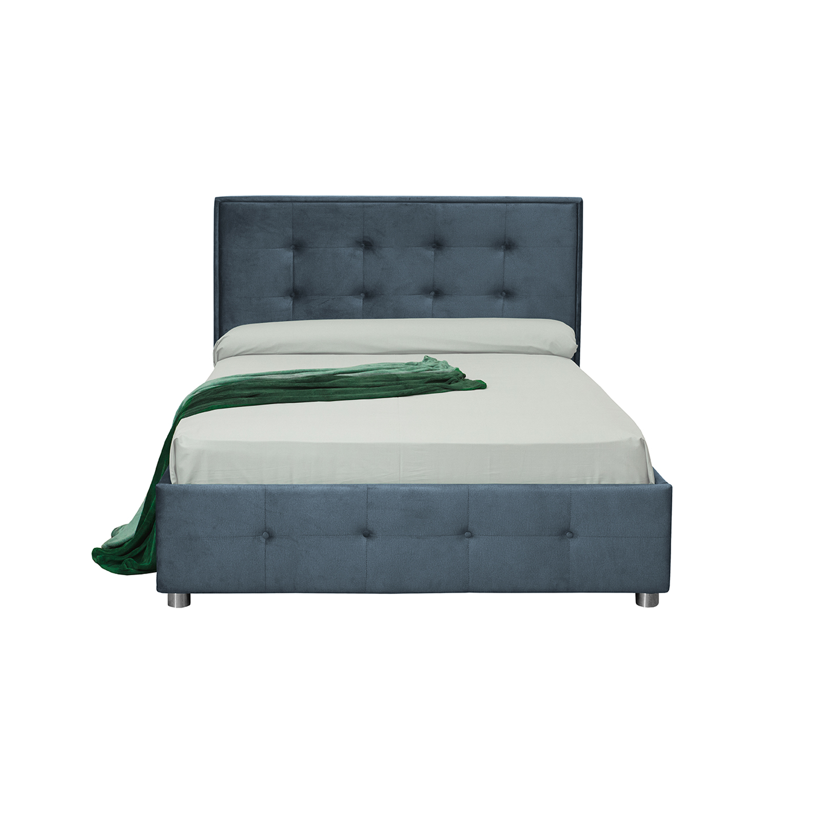 Pat tapitat LUXOR, 140x200 cm, cu sezut rabatabil, spatiu depozitare, albastru verzui