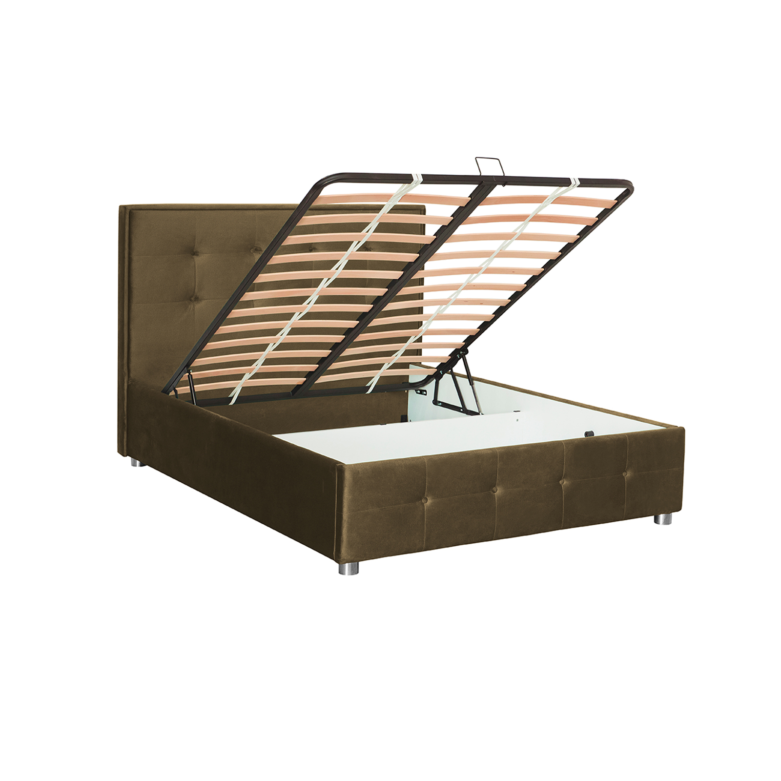 Pat tapitat LUXOR, 140x200 cm, cu sezut rabatabil, spatiu depozitare, kaki