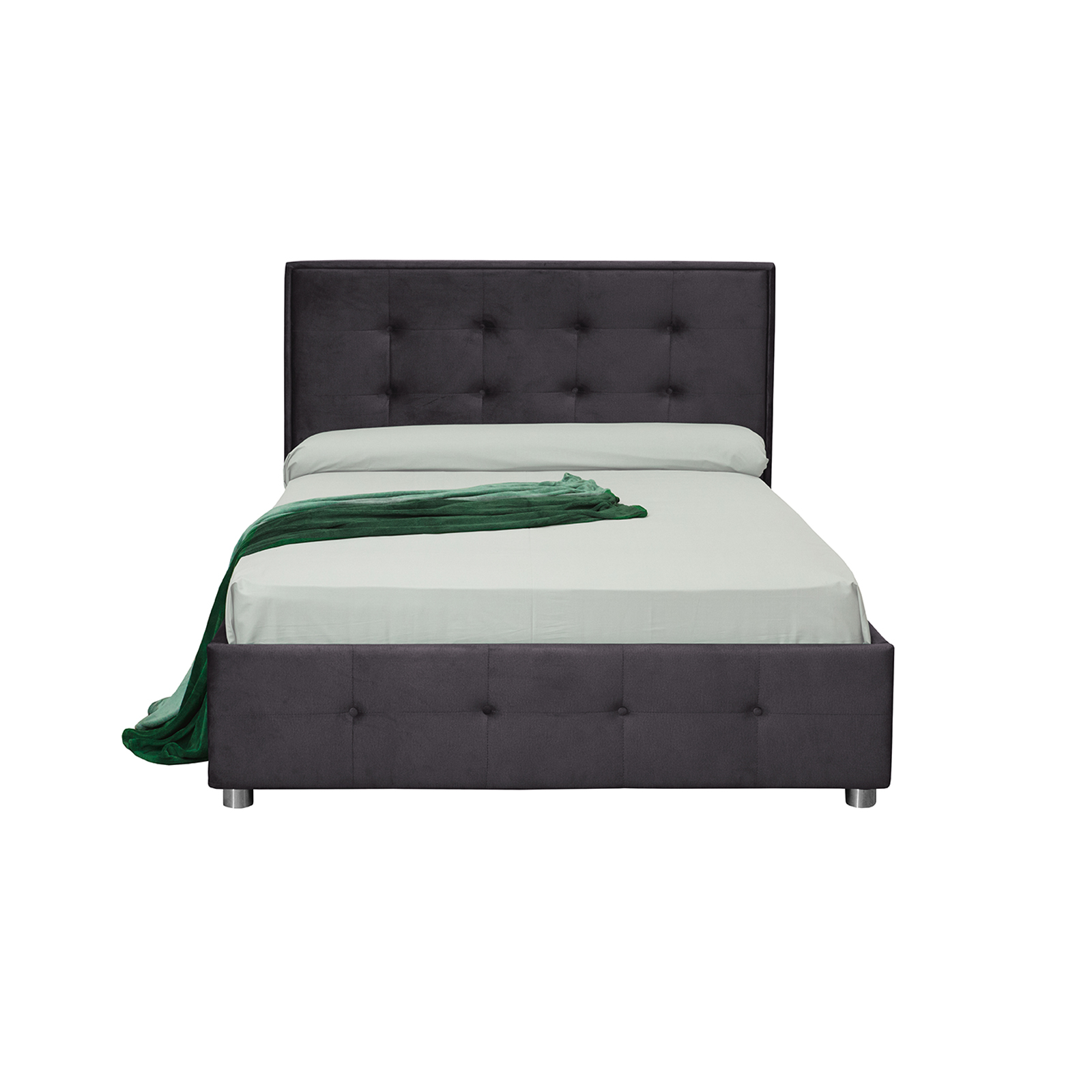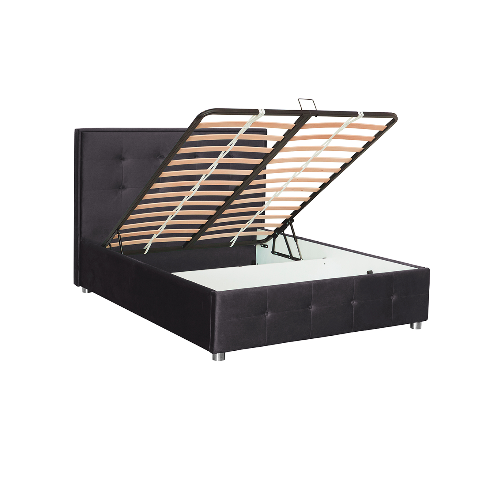 Pat tapitat LUXOR, 180x200 cm, cu sezut rabatabil, spatiu depozitare, mov inchis