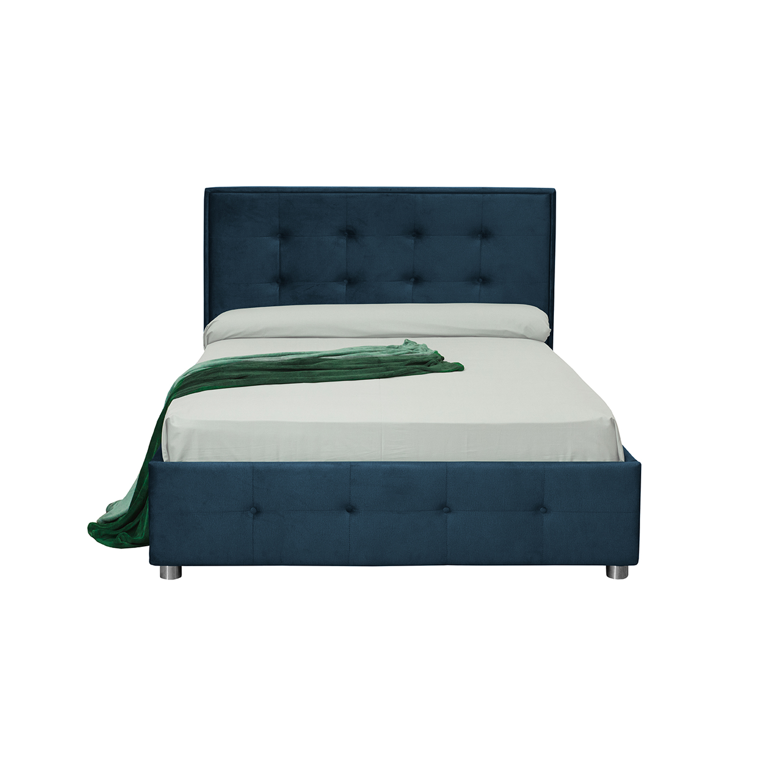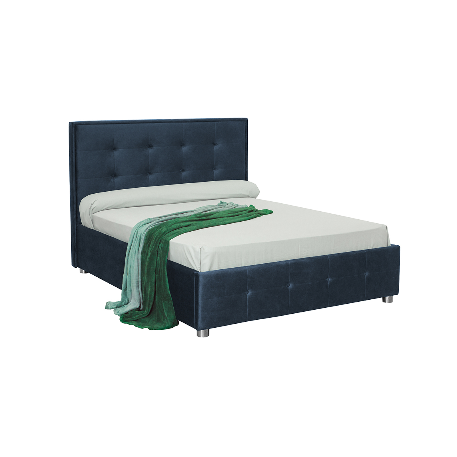 Pat tapitat LUXOR, 180x200 cm, cu sezut rabatabil, spatiu depozitare, albastru inchis