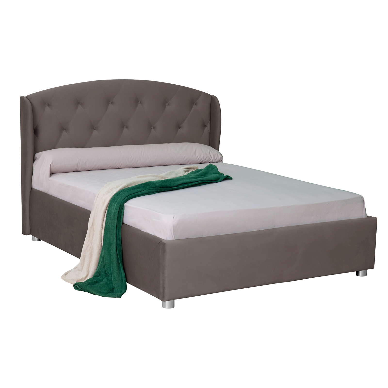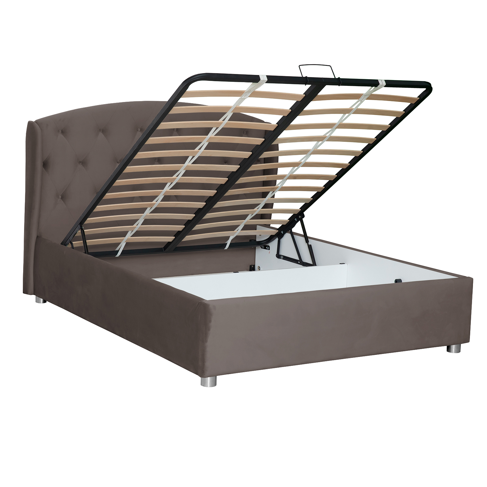 Pat tapitat ROUND, cu somiera rabatabila, spatiu depozitare, maro, 160x200 cm