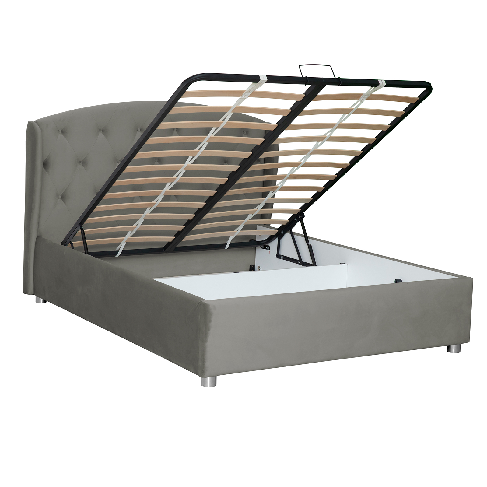 Pat tapitat ROUND, cu somiera rabatabila, spatiu depozitare, crem inchis, 180x200 cm