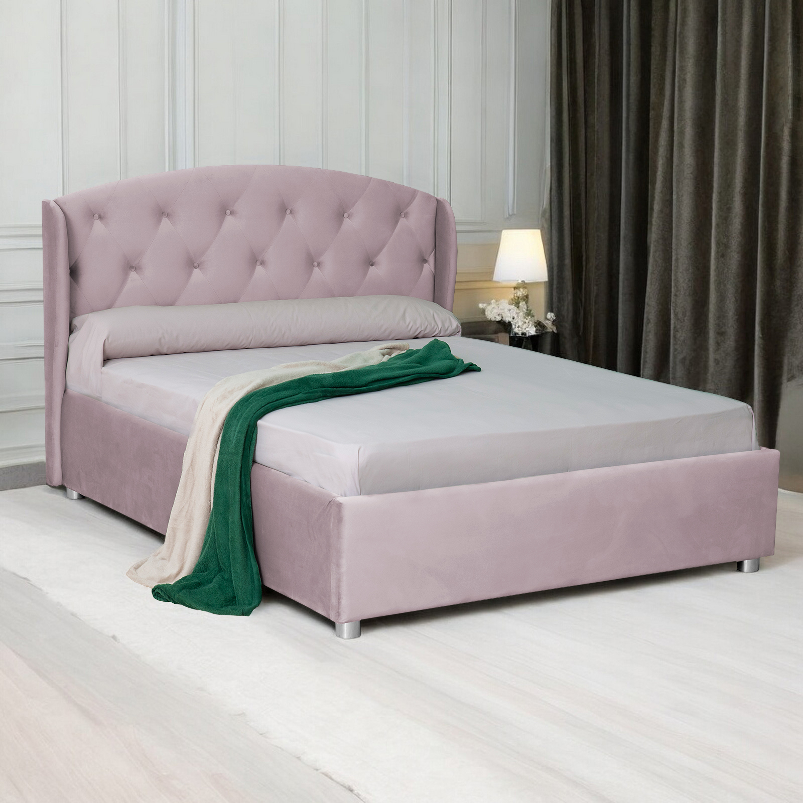 Patul ROUND este unul modern, disponibil in diferite culori de stofa. Acesta defineste decorul dormitorului tau si ii confera o nota de eleganta prin imbinarea simplitatii nuantelor cu detaliile complexe de care dispune. Liniile bine definite si conturarea minimalista il transforma intr-un pat deosebit care va redefini confortul dormitorului tau.