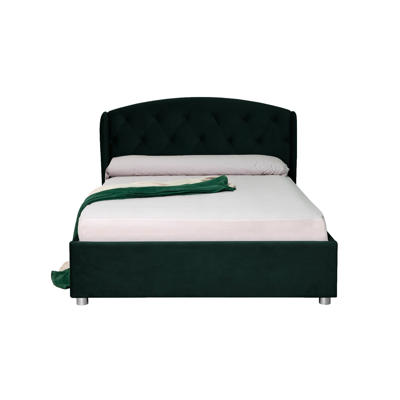 Patul ROUND este unul modern, disponibil in diferite culori de stofa. Acesta defineste decorul dormitorului tau si ii confera o nota de eleganta prin imbinarea simplitatii nuantelor cu detaliile complexe de care dispune. Liniile bine definite si conturarea minimalista il transforma intr-un pat deosebit care va redefini confortul dormitorului tau.