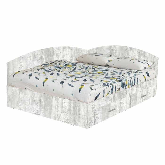 Pat Colt Alma 180x200 cm, cu 2 sertare laterale pe role, pin antichizat