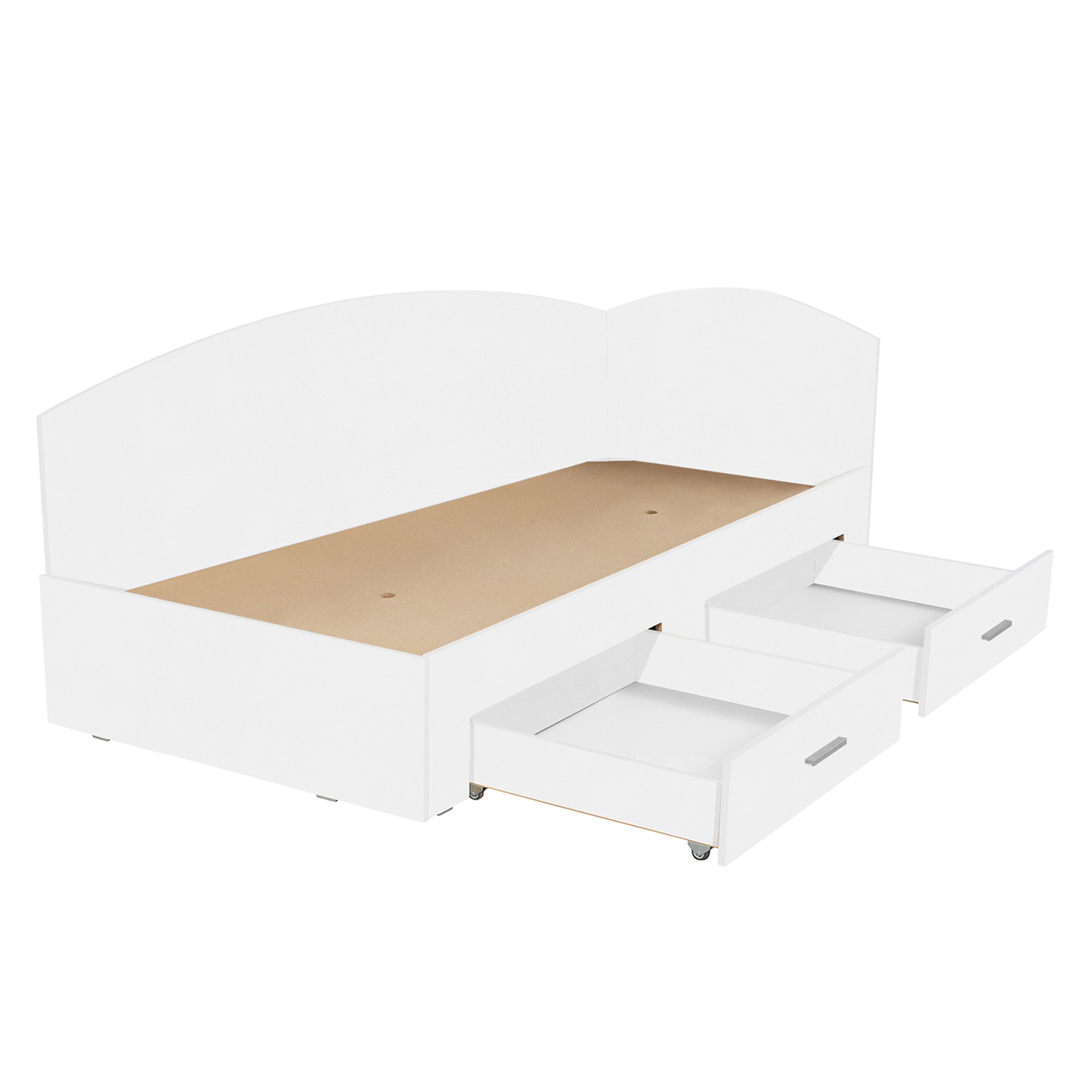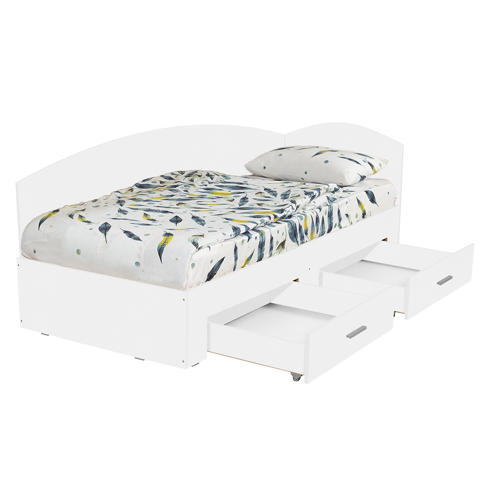 Pat Colt Alma 90x200 cm, cu 2 sertare laterale pe role, alb