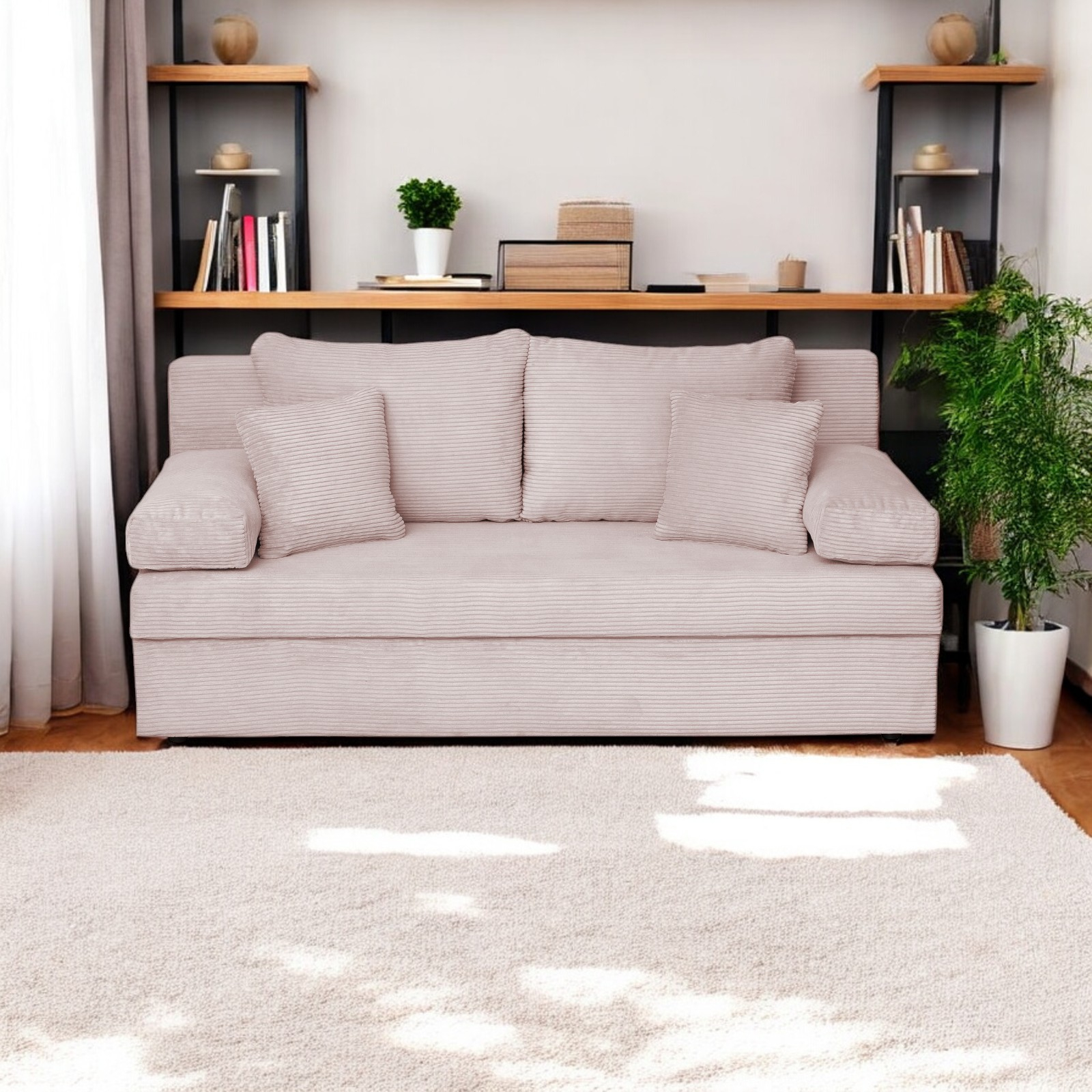 Canapea ANA LUX extensibila, 3 locuri, cu lada depozitare, roz pudra, 185x82x80 cm