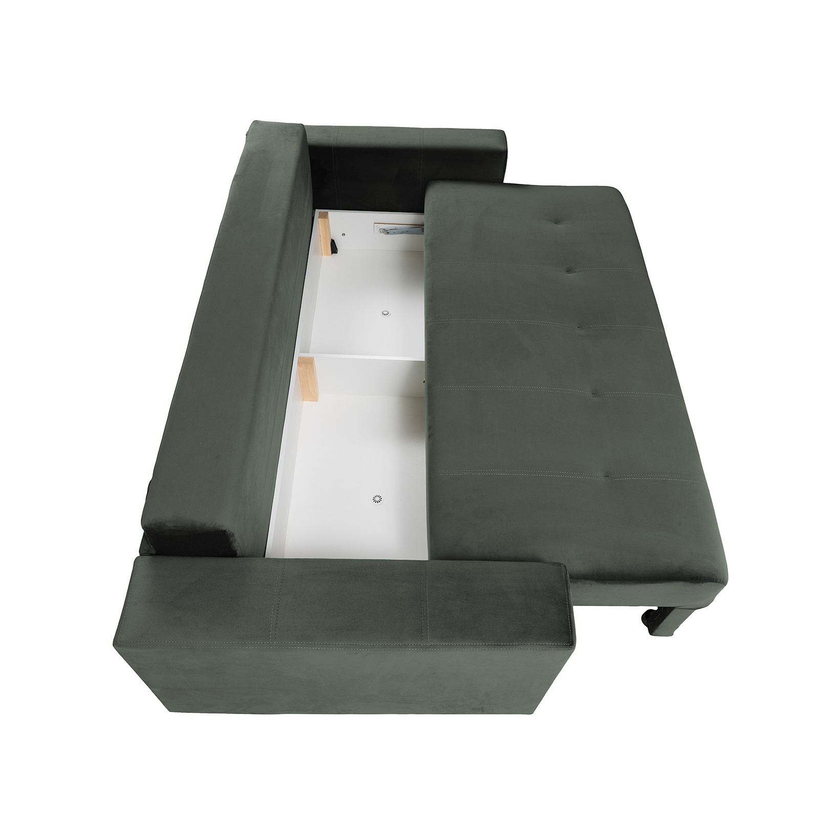 Materiale: Lemn masiv, Elemente PAL si PFL, Minet 150g/m², Pasla 1200g/m², Arcuri tip bonnel: grosime sarma 2.4 mm, Spuma poliuretanica (burete), Metal, Stofa