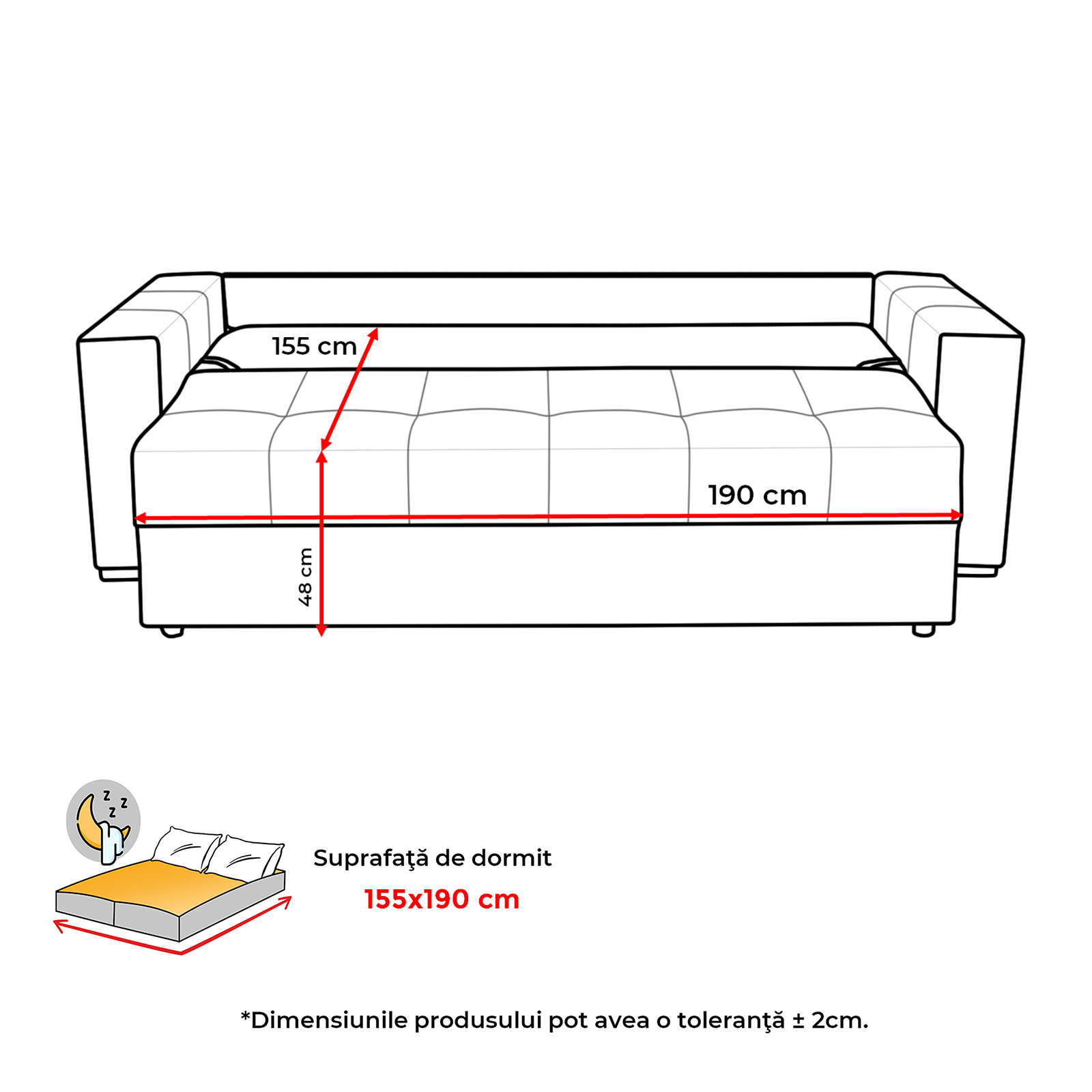 Suprafata dormit: 155x190 cm