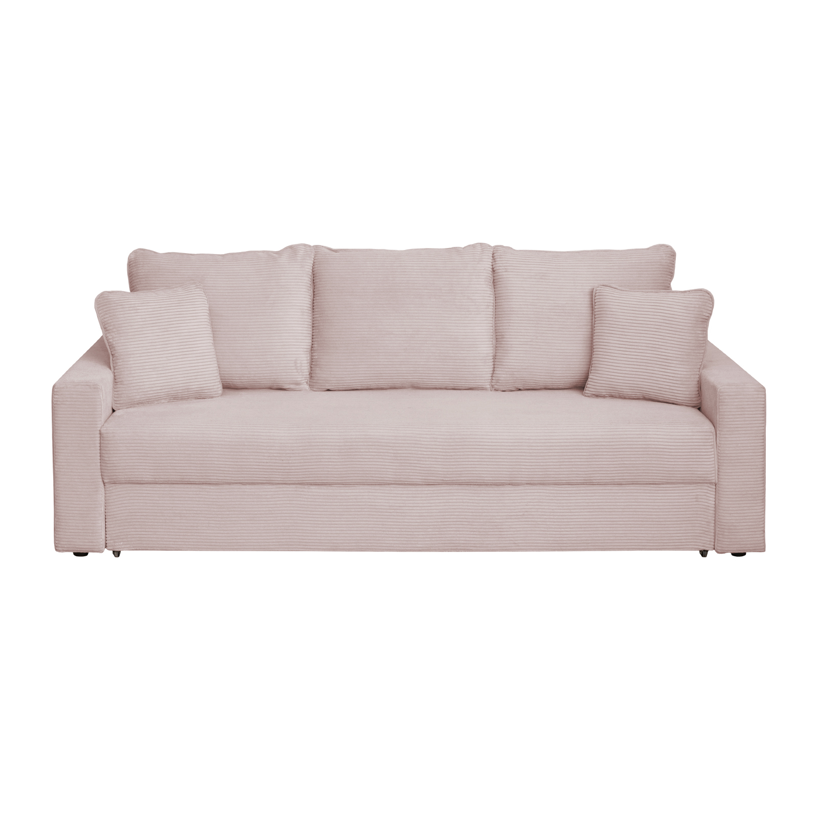 Canapea NICO II LUX extensibila, 3 locuri, cu arcuri si lada depozitare, roz pudra, 220x85x75 cm