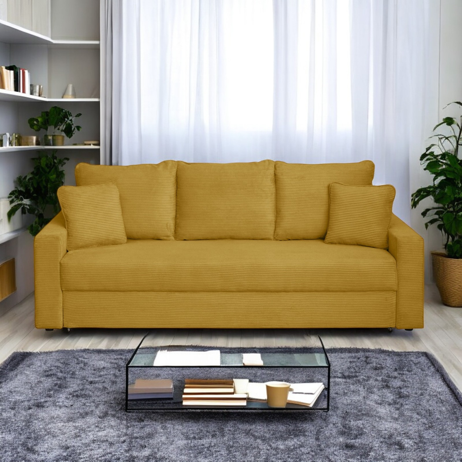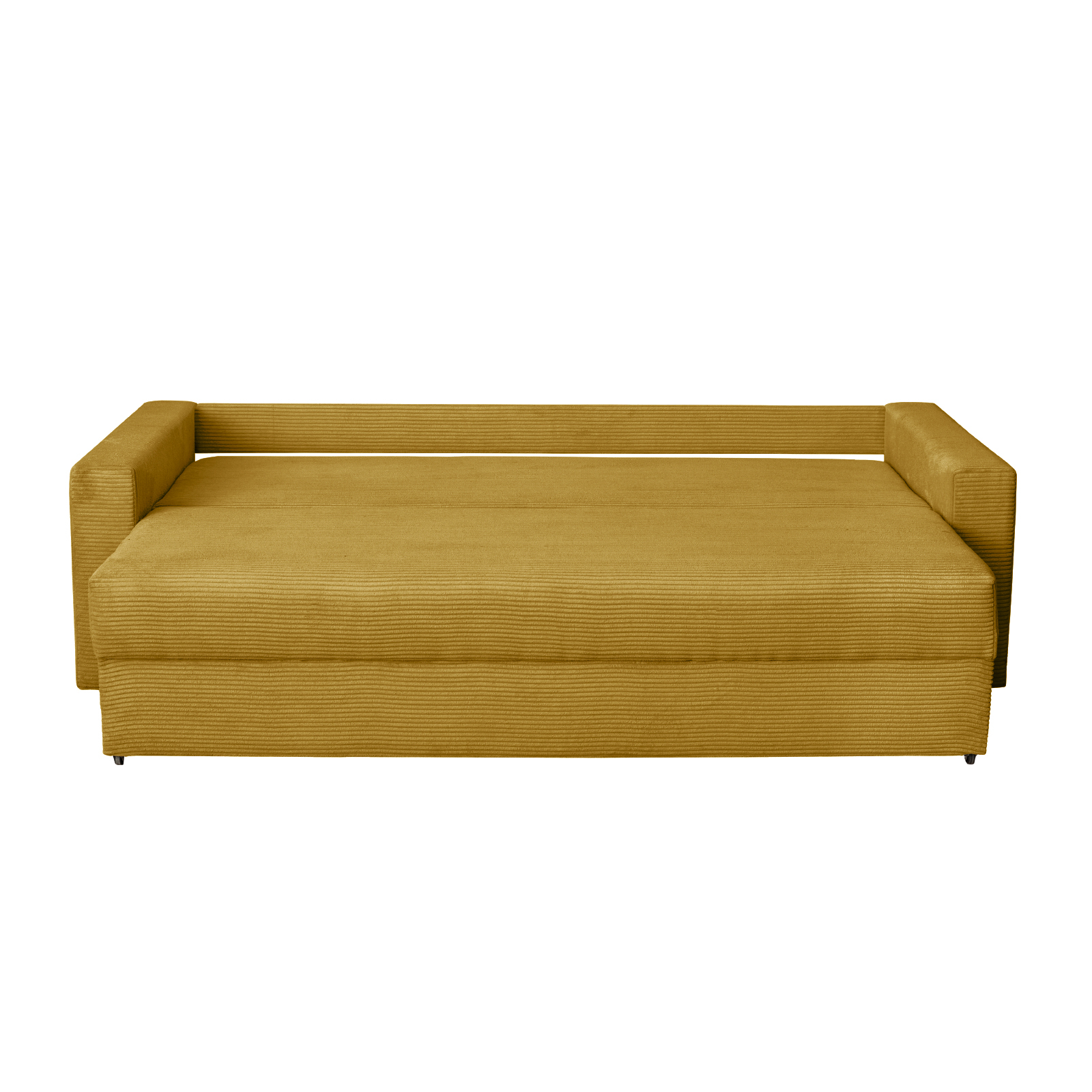 Canapea NICO II LUX extensibila, 3 locuri, cu arcuri si lada depozitare, mustar, 220x85x75 cm