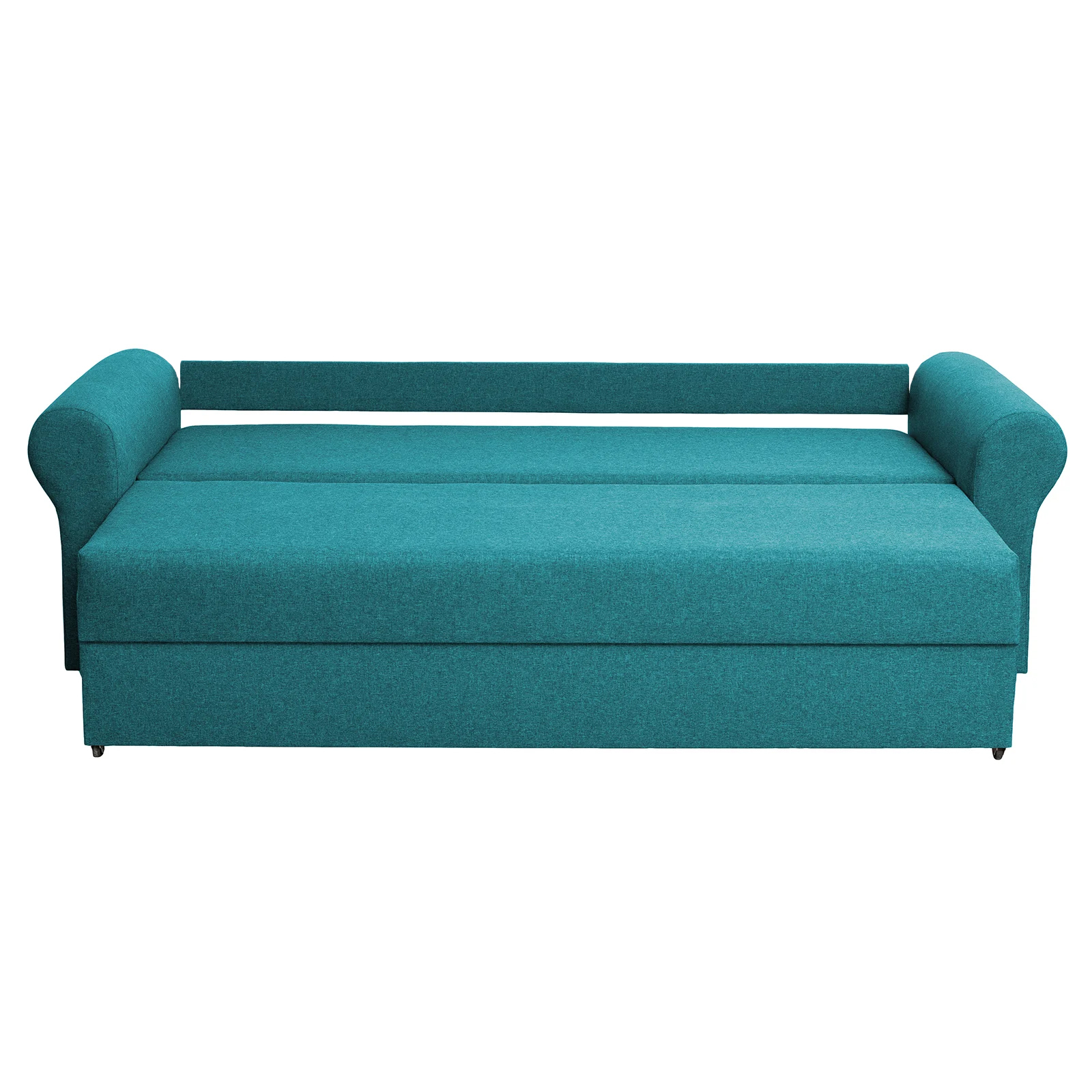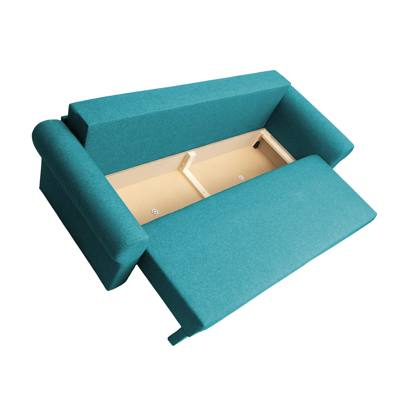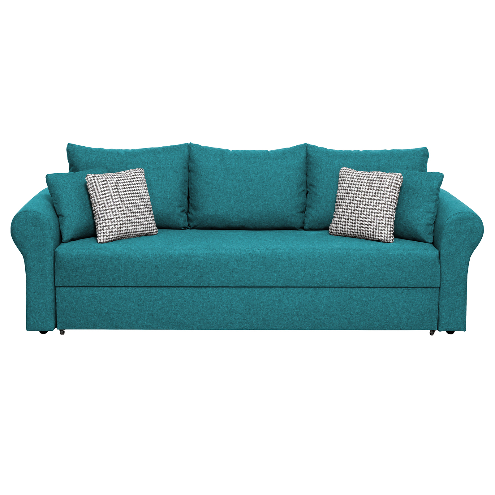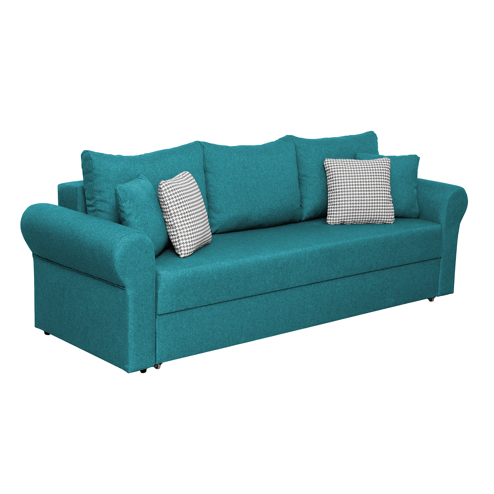 Canapea SARA II extensibila, 3 locuri, cu lada depozitare, turcoaz + print MZ mini bleu, 235x90x75 cm