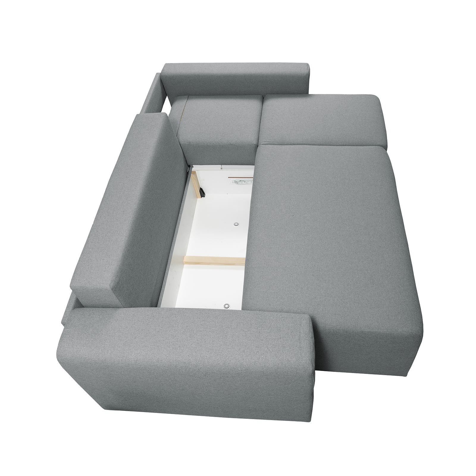 Coltar/Canapea BEGA B extensibil, cu arcuri si lada depozitare, colt interschimbabil, gri deschis, 240x153x80 cm