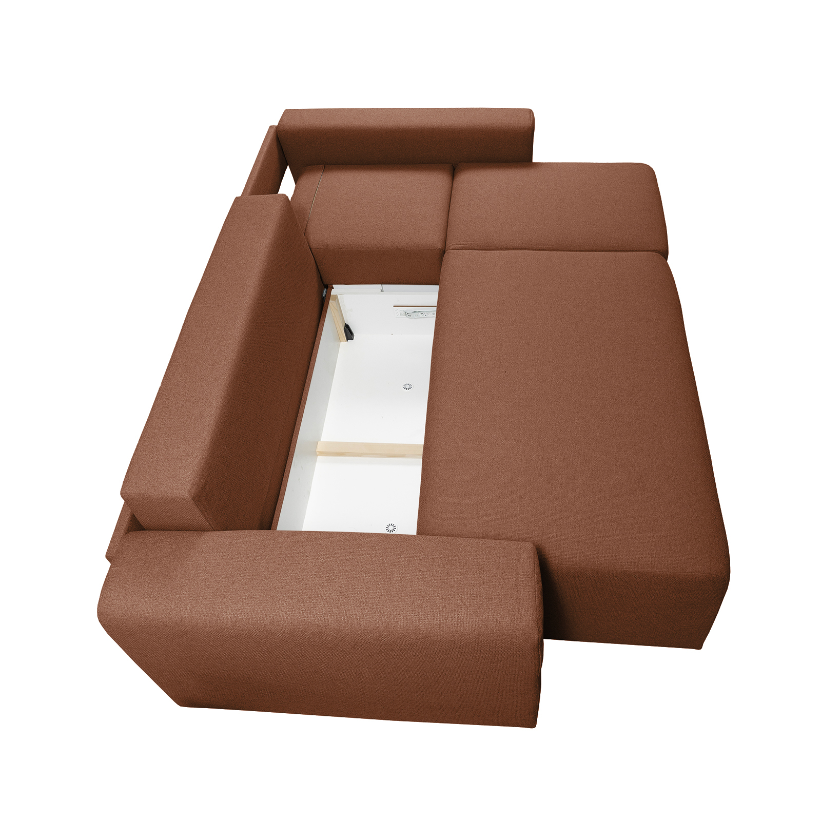 Coltar/Canapea BEGA B extensibil, cu arcuri si lada depozitare, colt interschimbabil, caramiziu, 240x153x80 cm