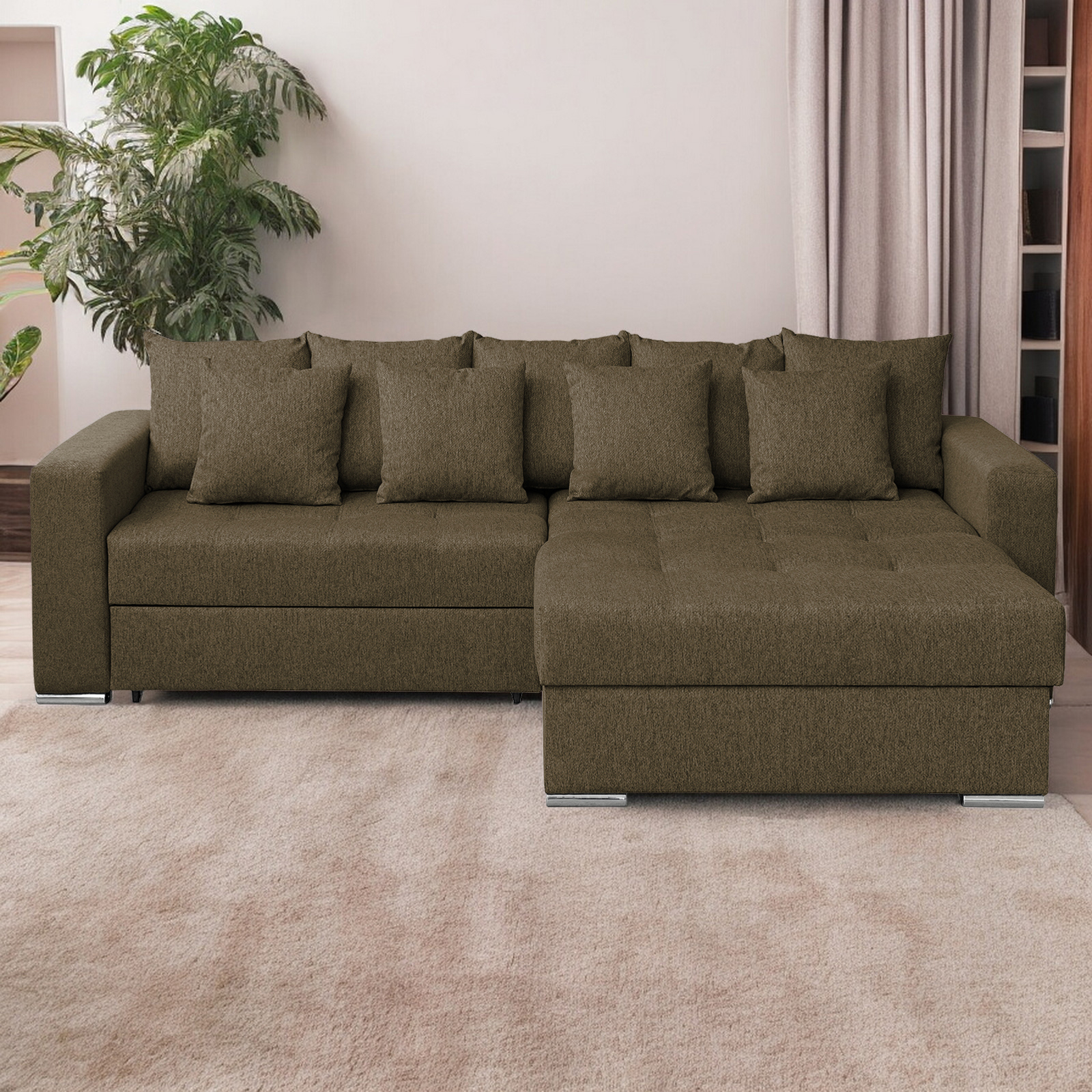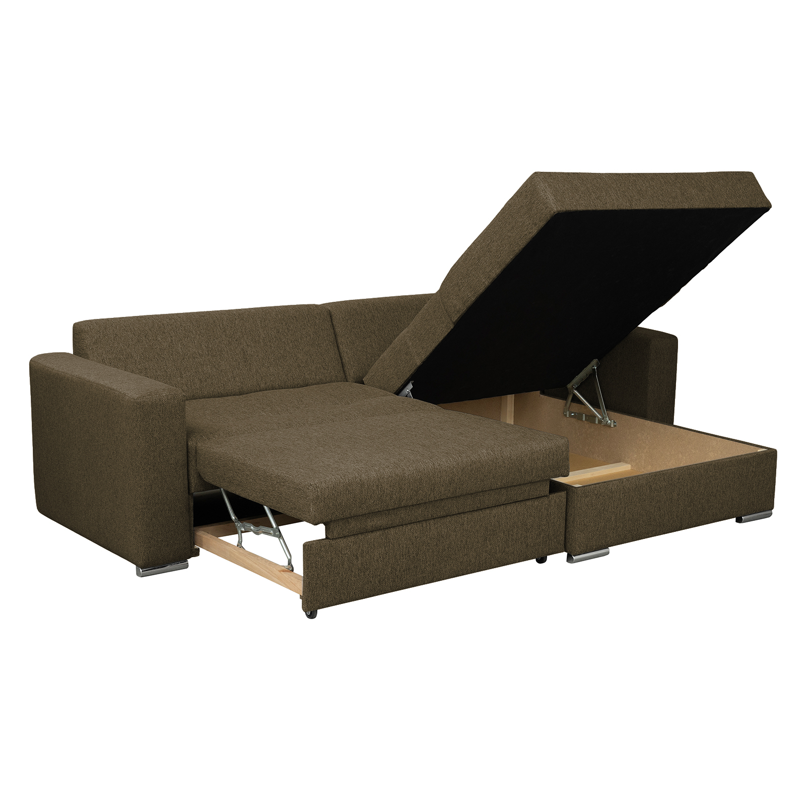 Coltar FELIX extensibil, cu arcuri si lada depozitare, colt interschimbabil, maro, 266x165x90 cm