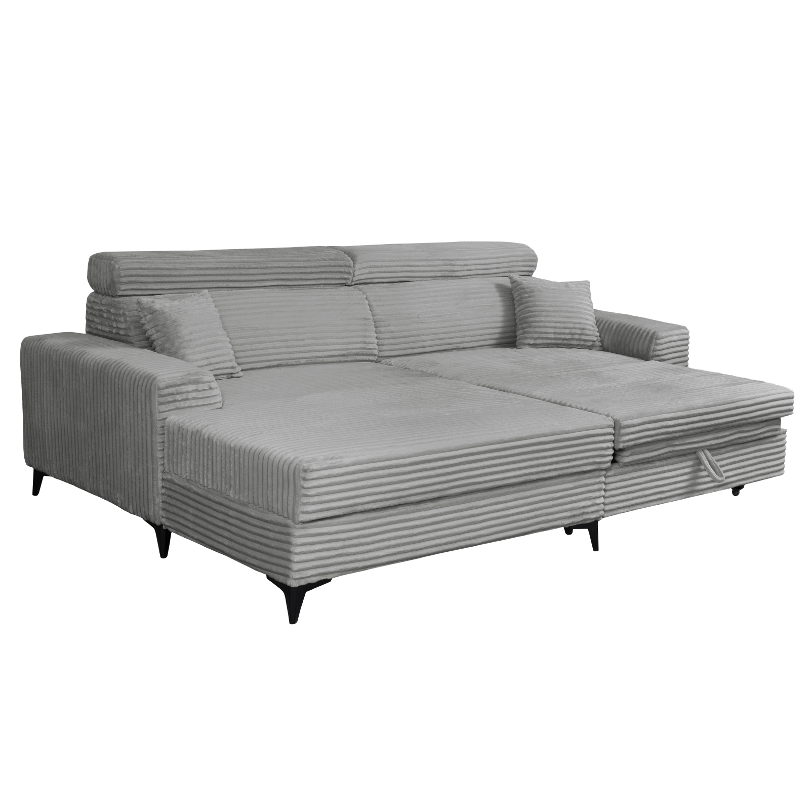 Coltar FLORIDA ONE L TILIA extensibil, cu arcuri si lada depozitare, colt stanga, gri deschis, 280x175x95 cm