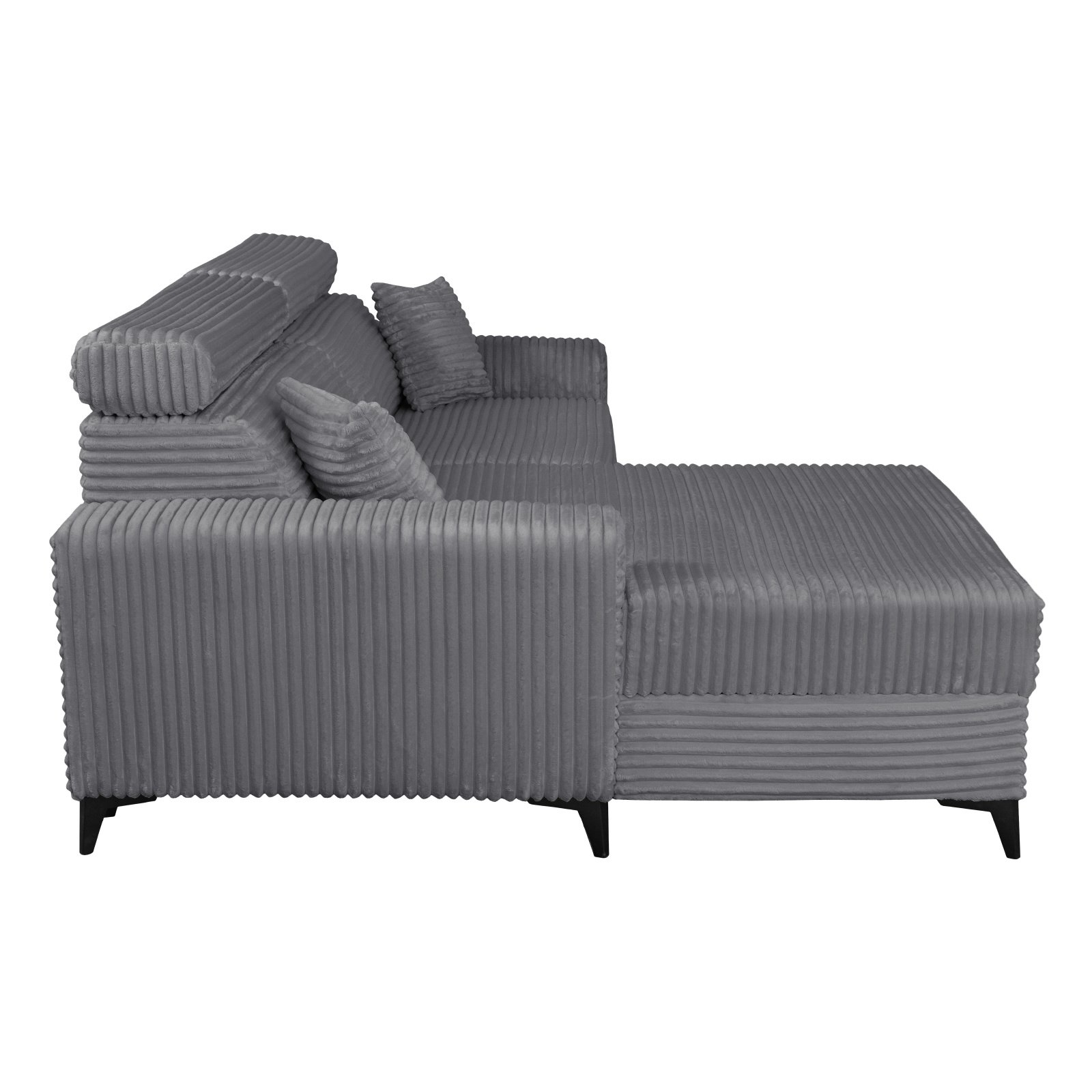 Coltar FLORIDA ONE L TILIA extensibil, cu arcuri si lada depozitare, colt stanga, gri inchis, 280x175x95 cm