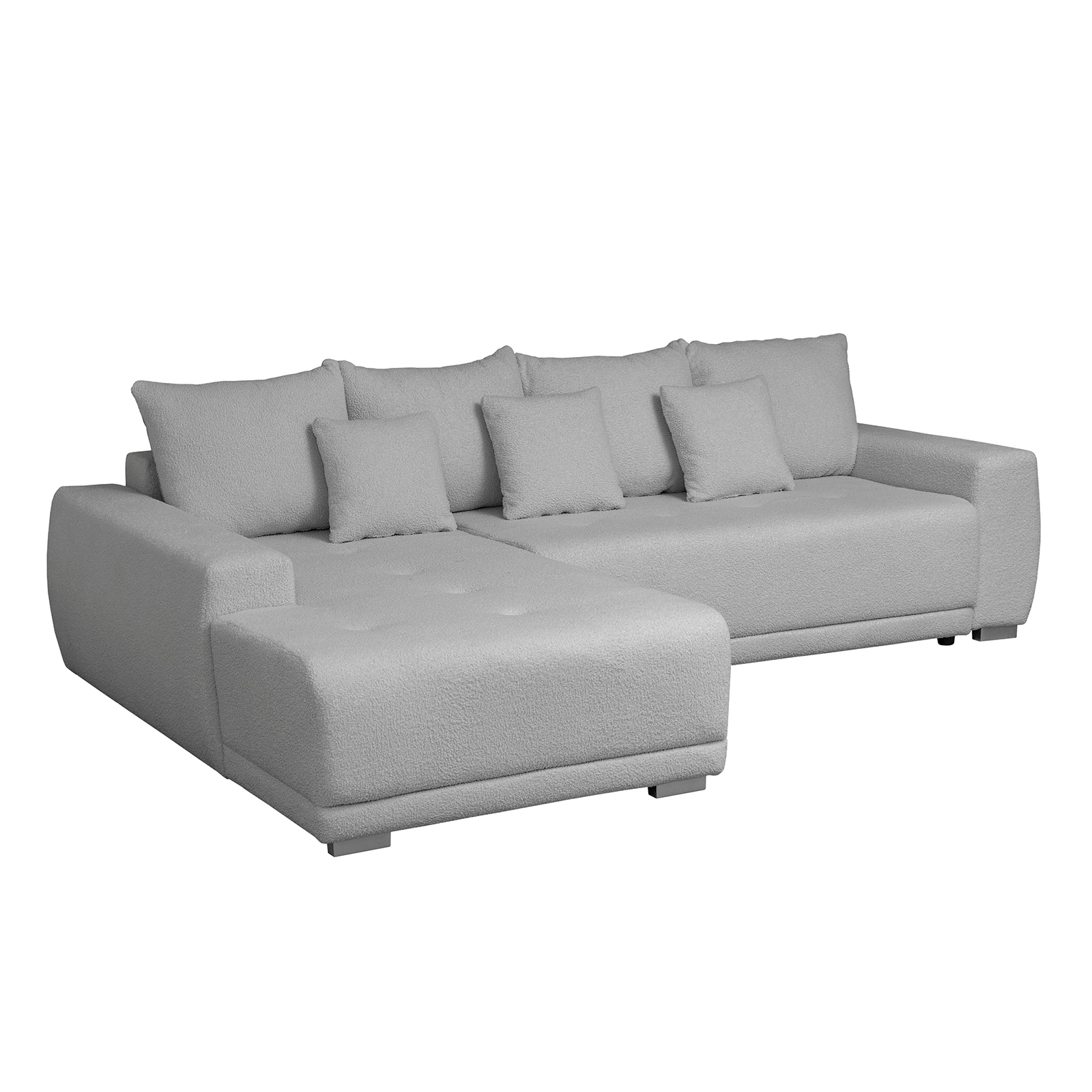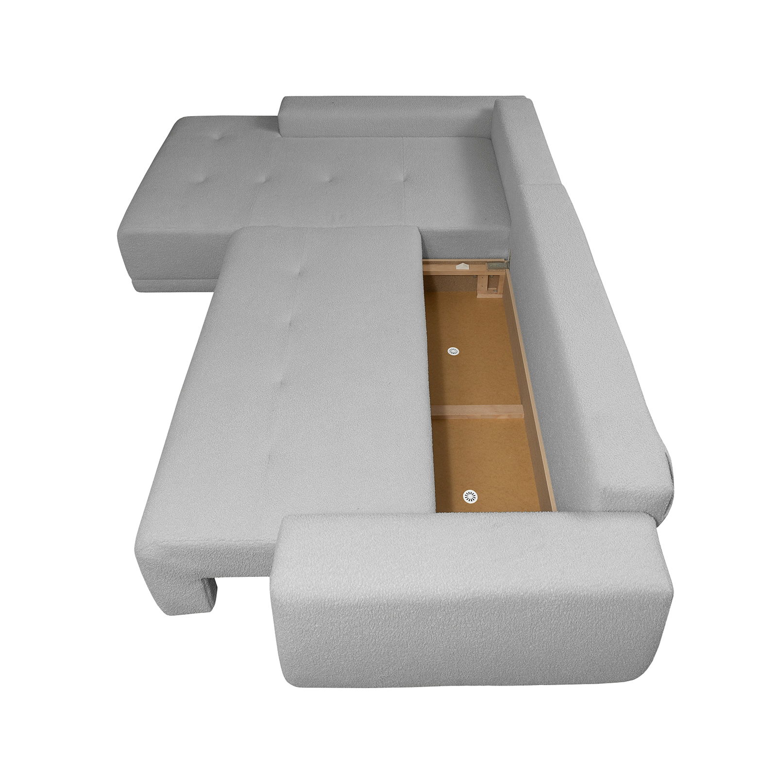 Coltar MARIBO L BUCLE extensibil, cu arcuri si lada depozitare, colt stanga, gri, 280x204x92 cm