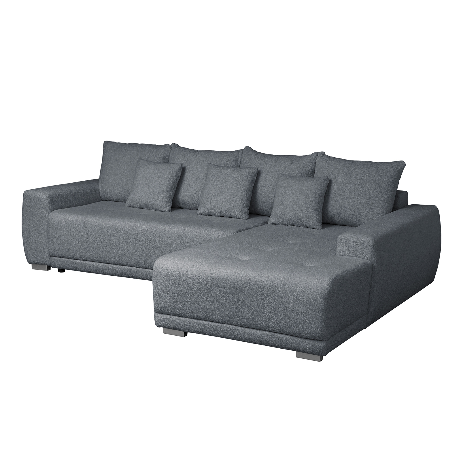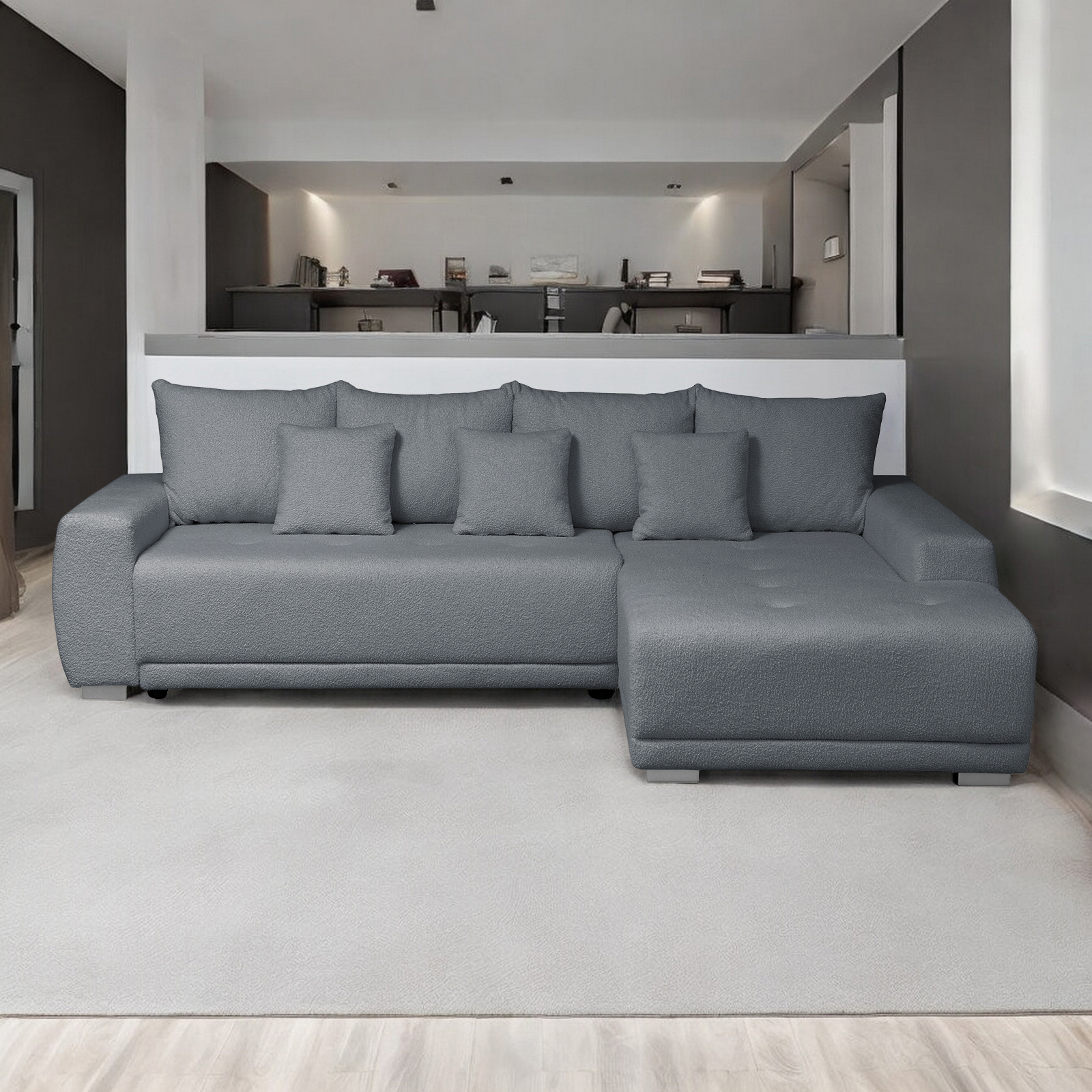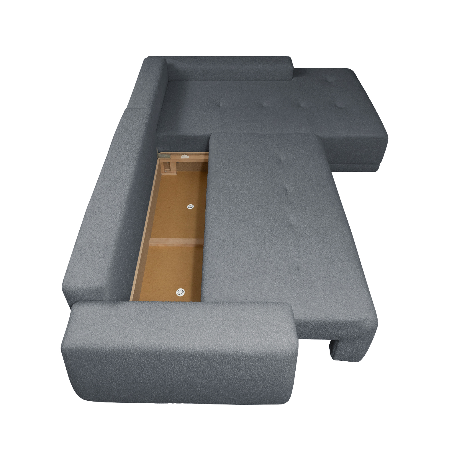 Coltar MARIBO L BUCLE extensibil, cu arcuri si lada depozitare, colt dreapta, gri inchis, 280x204x92 cm