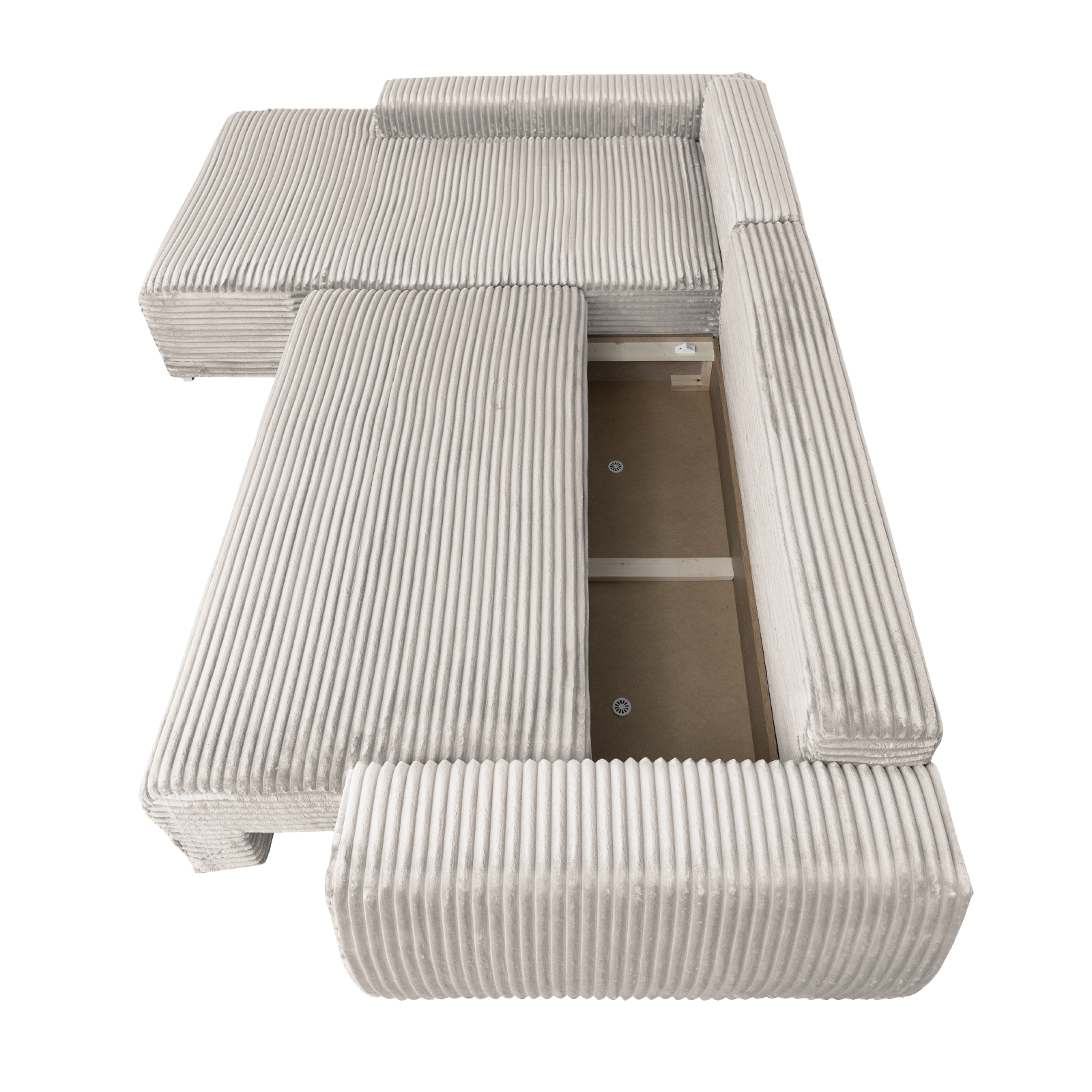 Coltar MARIBO L TILIA extensibil, cu arcuri si lada depozitare, colt stanga, bej, 280x204x92 cm