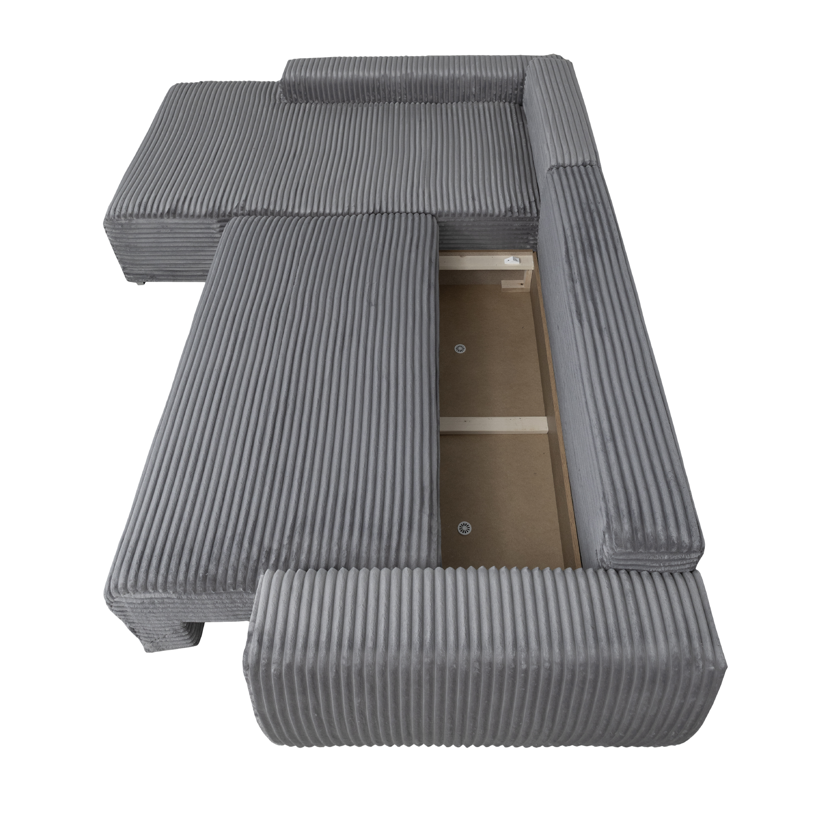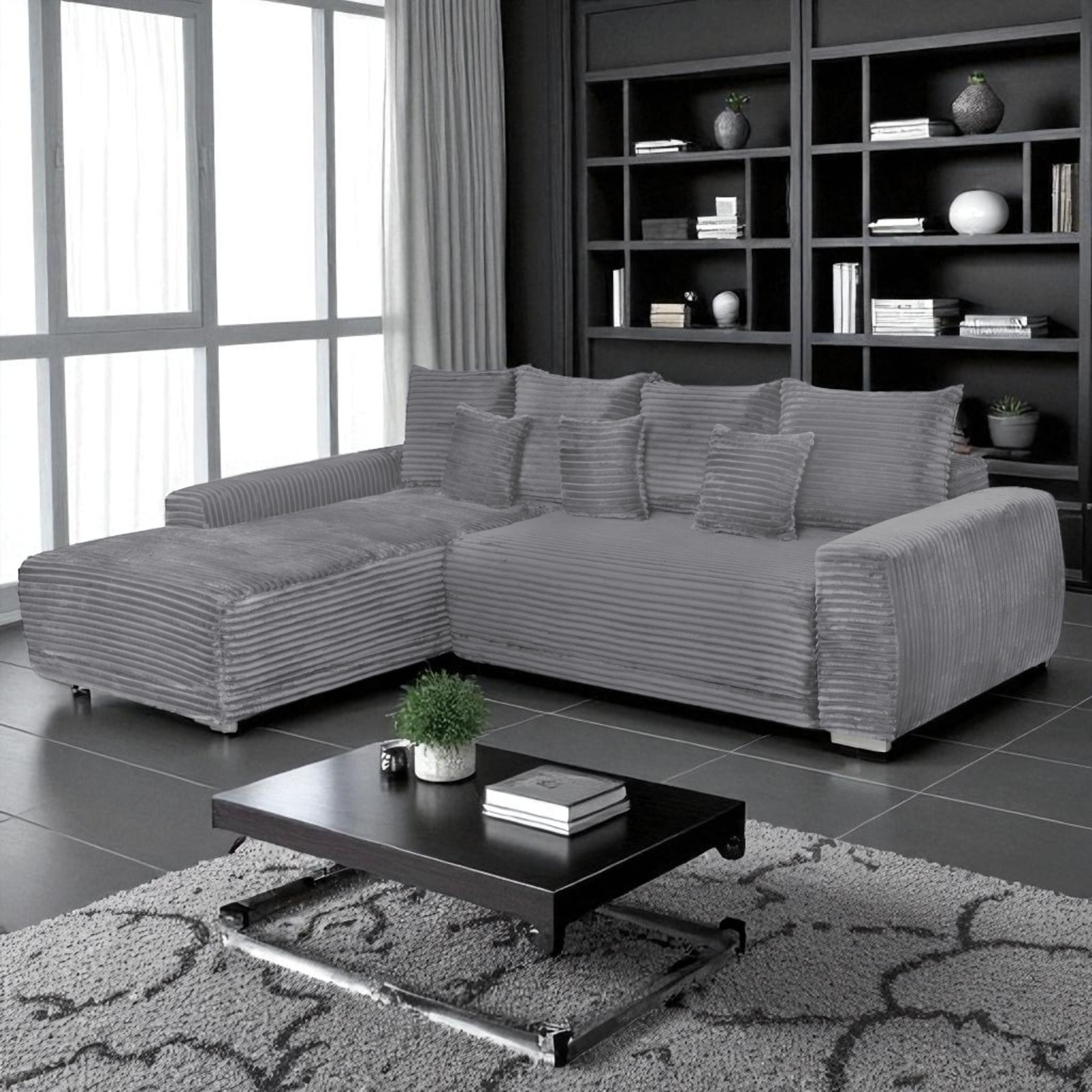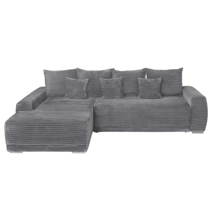 Coltar MARIBO L TILIA extensibil, cu arcuri si lada depozitare, colt stanga, gri inchis, 280x204x92 cm