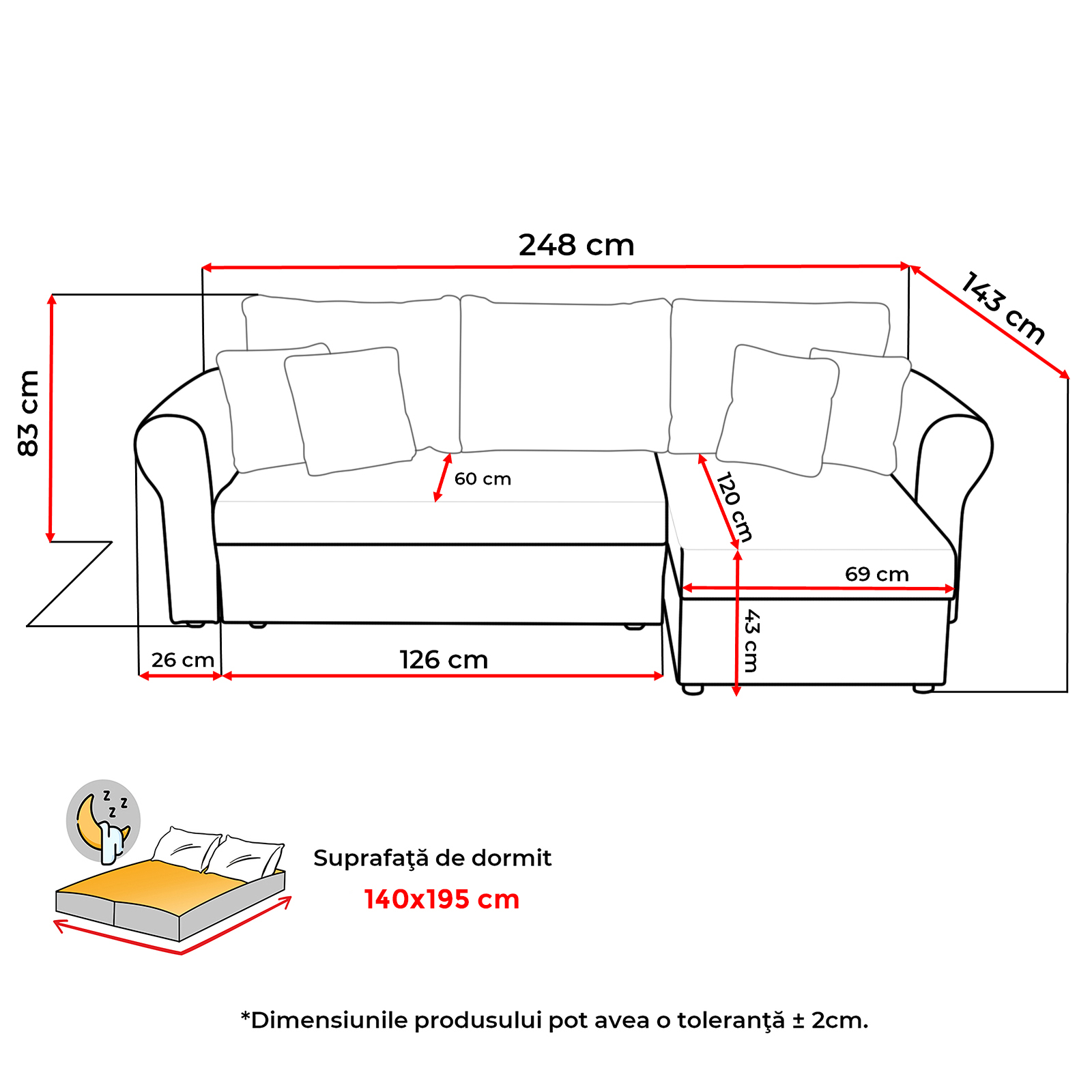 Dimensiuni suprafata de dormit: