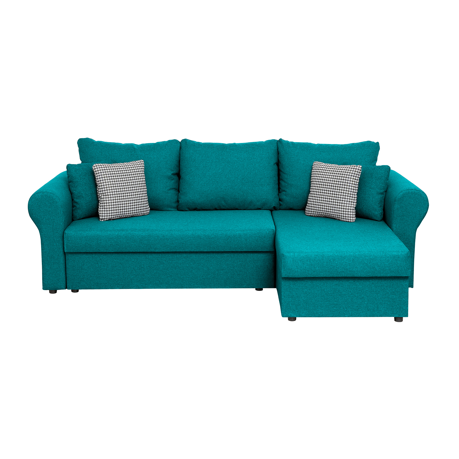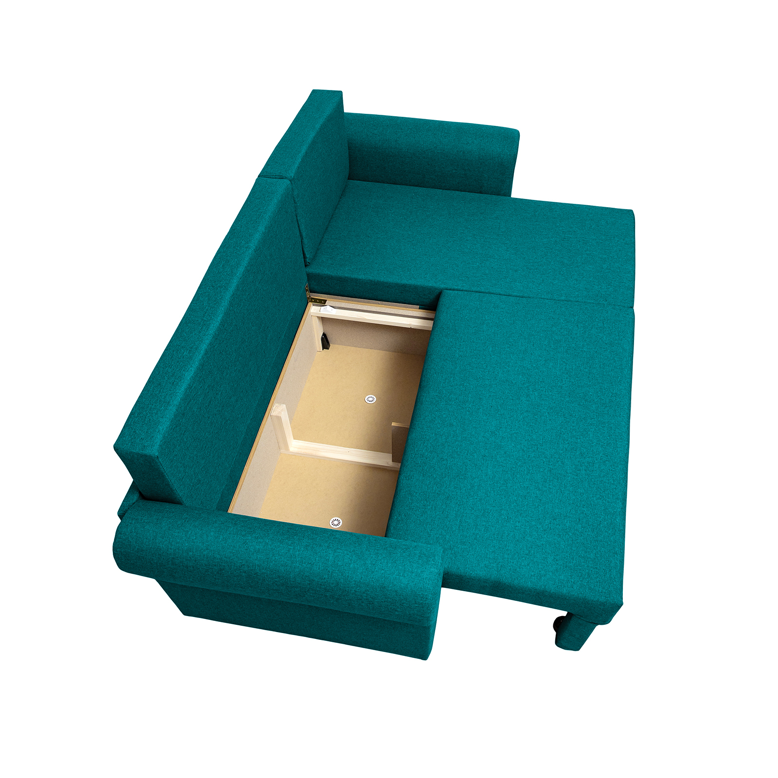 Coltar SARA II extensibil, cu lada depozitare, colt interschimbabil, turcoaz + print MZ mini bleu, 248x143x83 cm